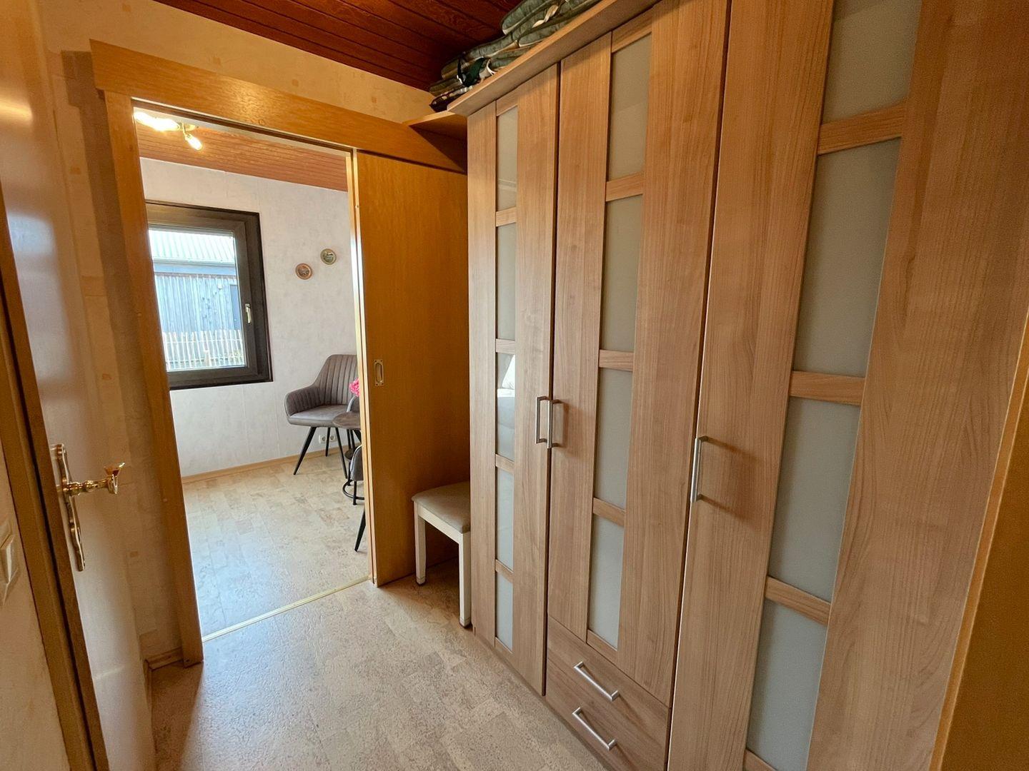 Eines der beiden Schlafzimmer ist mit einem Doppelbett (1,80m x 2m, mit 2 Einzelmatratzen) ausgestattet. Das andere Schlafzimmer verfügt über eine neue Schlafcouch (1,40m x 1,90m), die ausgezogen werden kann. Hier ist Platz für einen Erwachsenen oder auch 2 kleine Kinder. Einen Kleiderschrank für die Urlaubsgarderobe finden Sie im Flur, in dem es auch noch einen Abstellraum gibt um mitgebrachte Sachen zu verstauen.