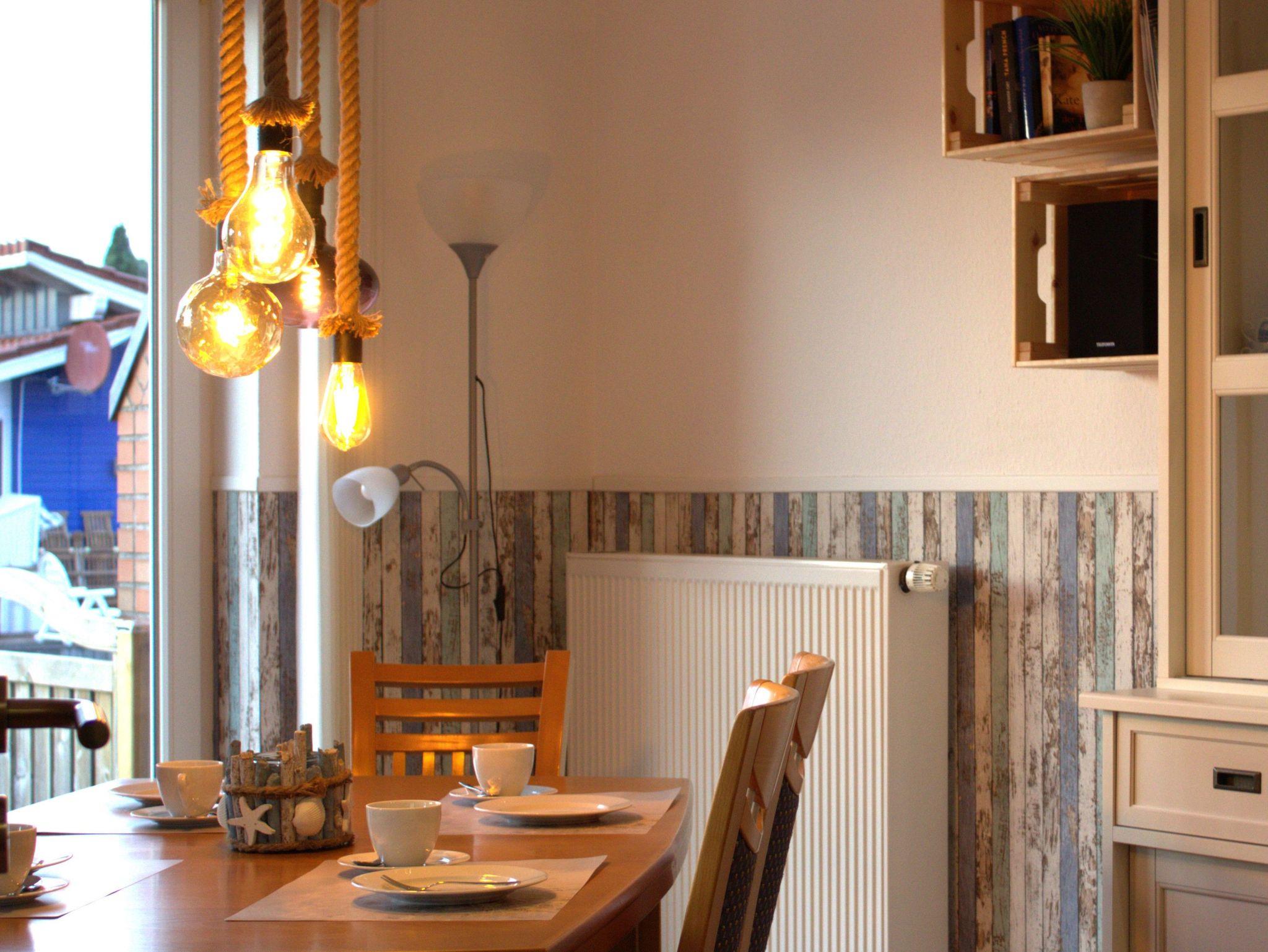 Genießen Sie die besondere, maritime Atmosphäre im geräumigen, lichtdurchfluteten Wohnzimmer mit den großen Fensterfronten. Bereits beim Blick aus dem Fenster sind Sie nah an der Natur: Fische springen, Wasservögel ziehen direkt vor der Terrasse ihre Kreise Der gemütliche Essbereich und die offene, gut ausgestattete Küche laden zum gemeinsamen Kochen und Essen ein. Im Wohnbereich stehen ein Smart-TV und eine Stereoanlage zur Verfügung. Vom Wohnzimmer gelangen Sie auf die große Wasserterrasse. Beobachten Sie das Lichtspiel auf dem Wasser oder entspannen Sie sich beim Lesen, Essen oder Sonnen an der frischen Luft.