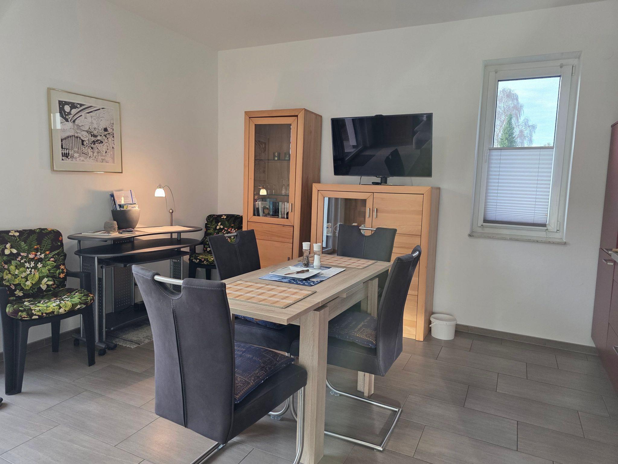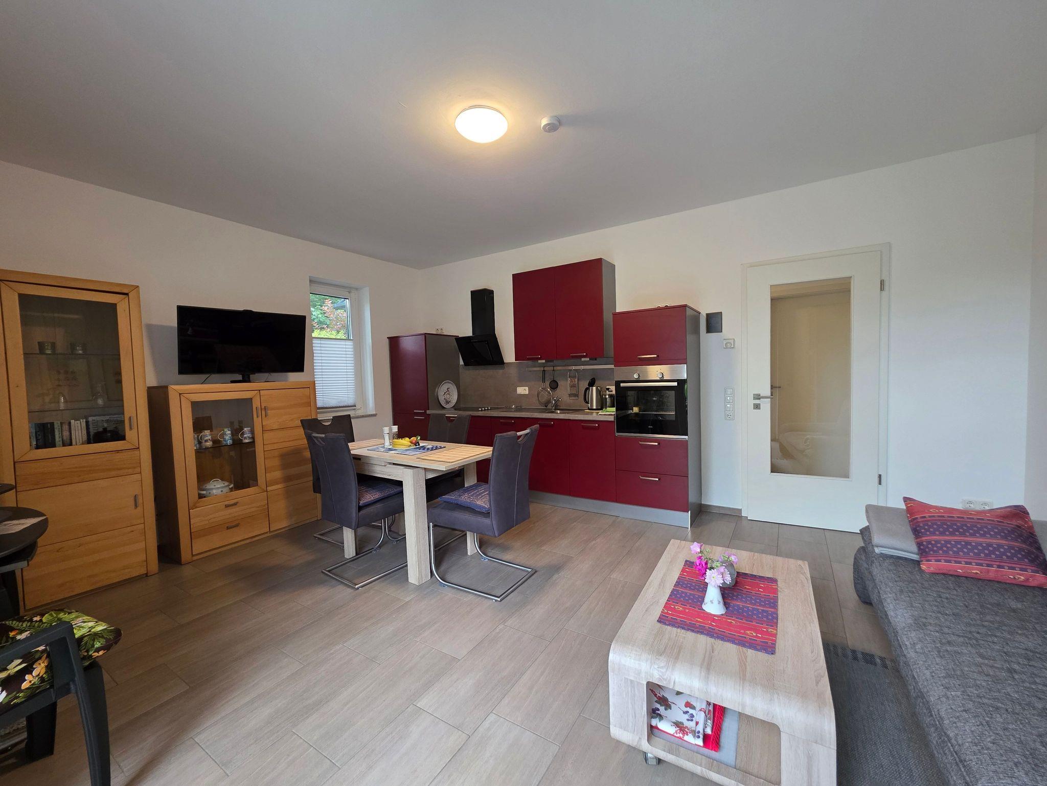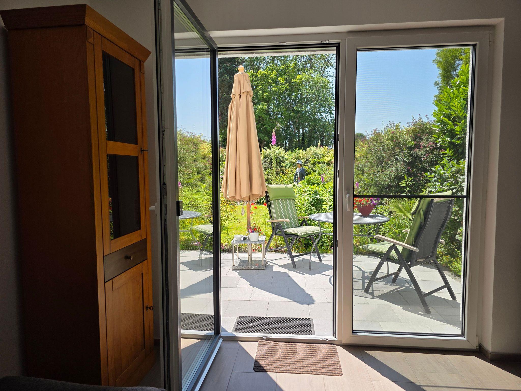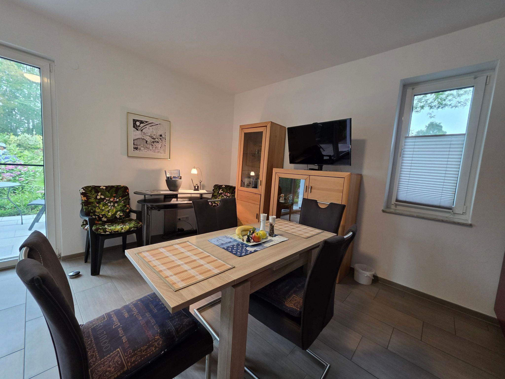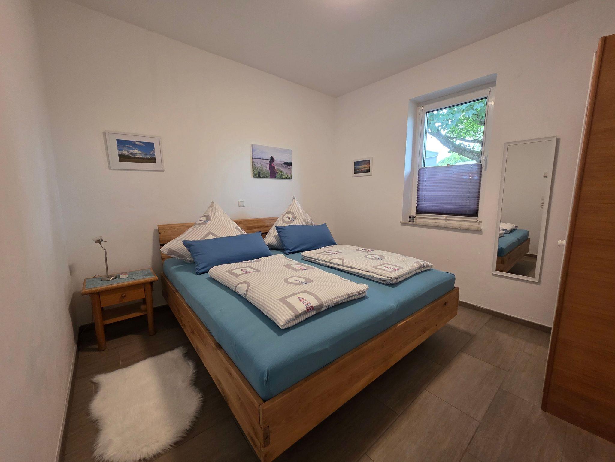 Die ebenerdige Ferienwohnung mit Fußbodenheizung verfügt über ein Schlafzimmer, Badezimmer, Wohn- Essbereich mit Küche und Terrasse. Auf Wunsch kann auch das Schlafsofa im Wohnbereich genutzt werden.