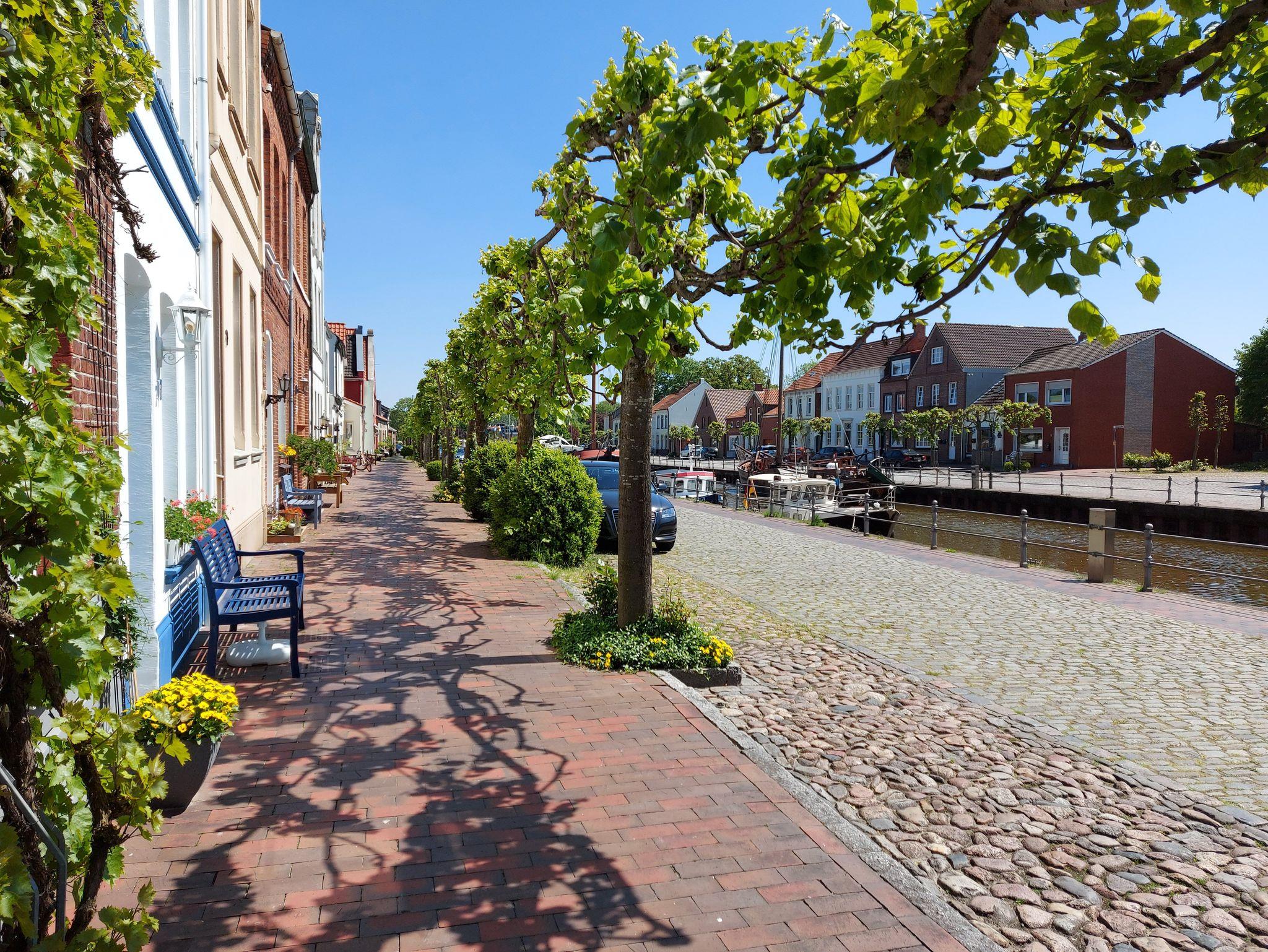 Neu renovierte Ferienwohnung im historischen Zentrum von Weener mit Blick auf die Georgskirche und modernem Komfort.