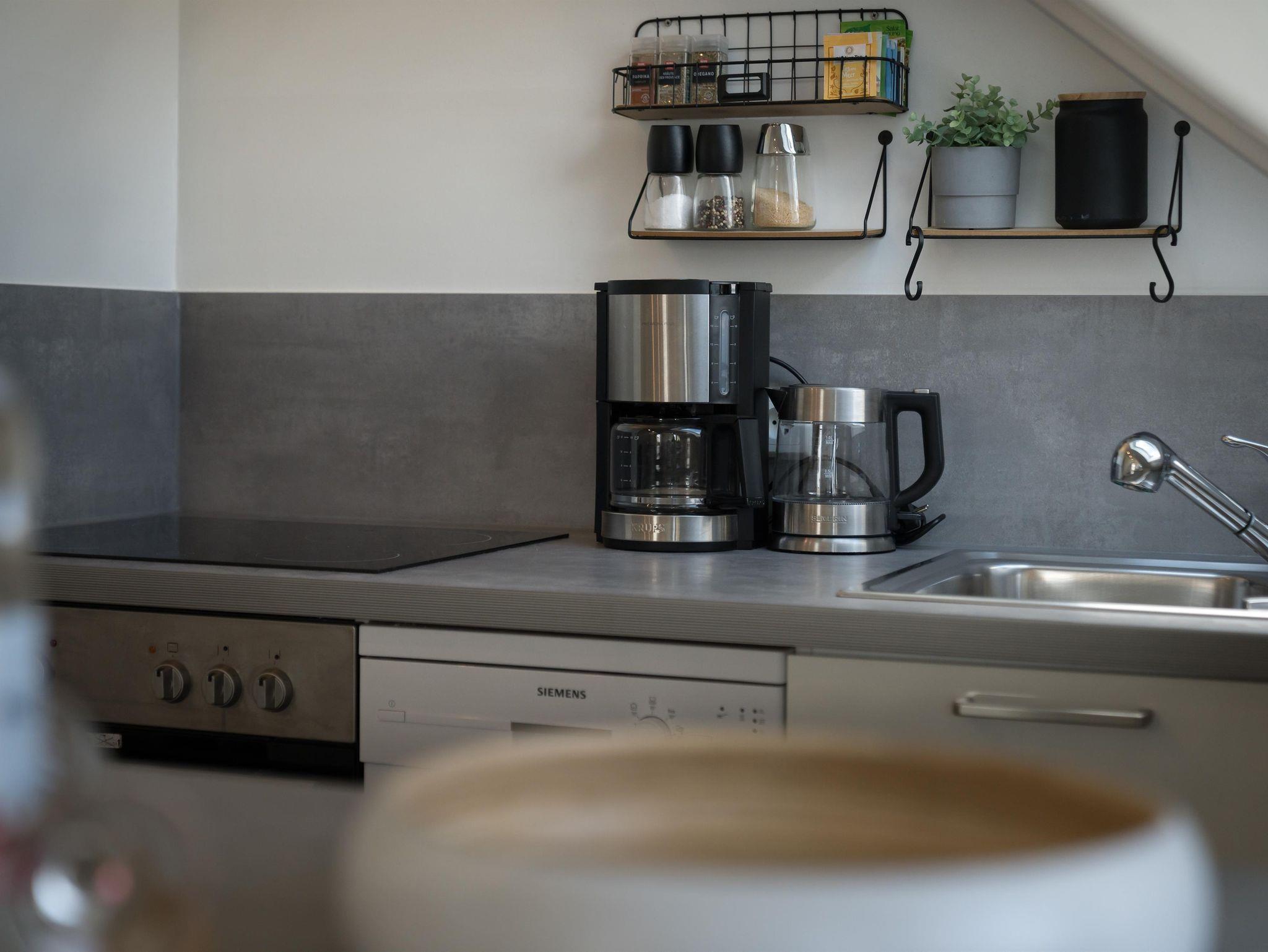 Die Ferienwohnung Wellenreiter im Erdgeschoss lädt mit einem gemütlichen Kamin und einem moderen Saunaraum mit Rainshower-Dusche und Ausgang zur Terrasse ein. Es gibt eigene Terrassenbereiche für jede Wohnung, außerdem Strandkörbe für die oberen Wohnungen. Ein Bike- und Surf Port ist gerade für Sie fertiggestellt. Hier können Sie Bretter unterstellen, Neos aufhängen, Fahrräder in der Laube verschliessen und bei unbeständigem Wetter geschützt relaxen. WLAN ist im ganzen Haus leider teilweise mit starken Schwankungen verfügbar. Wichtig für die Kids: Direkt gegenüber befinden sich Bolz- und Spielplatz! Und in wenigen Minuten ist eine schöne Badestelle am Meer in Vollerwiek zu erreichen.