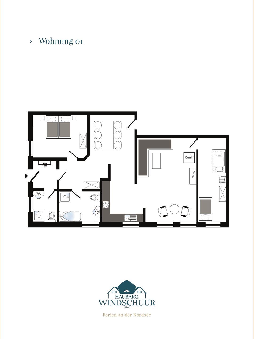 Hochwertige Ferienwohnungen im Haubarg Windschuur auf Eiderstedt in Welt. Das 1837 als typisch Eiderstedter Bauernhaus errichtete Gebäude wurde in den letzten Jahren liebevoll restauriert.