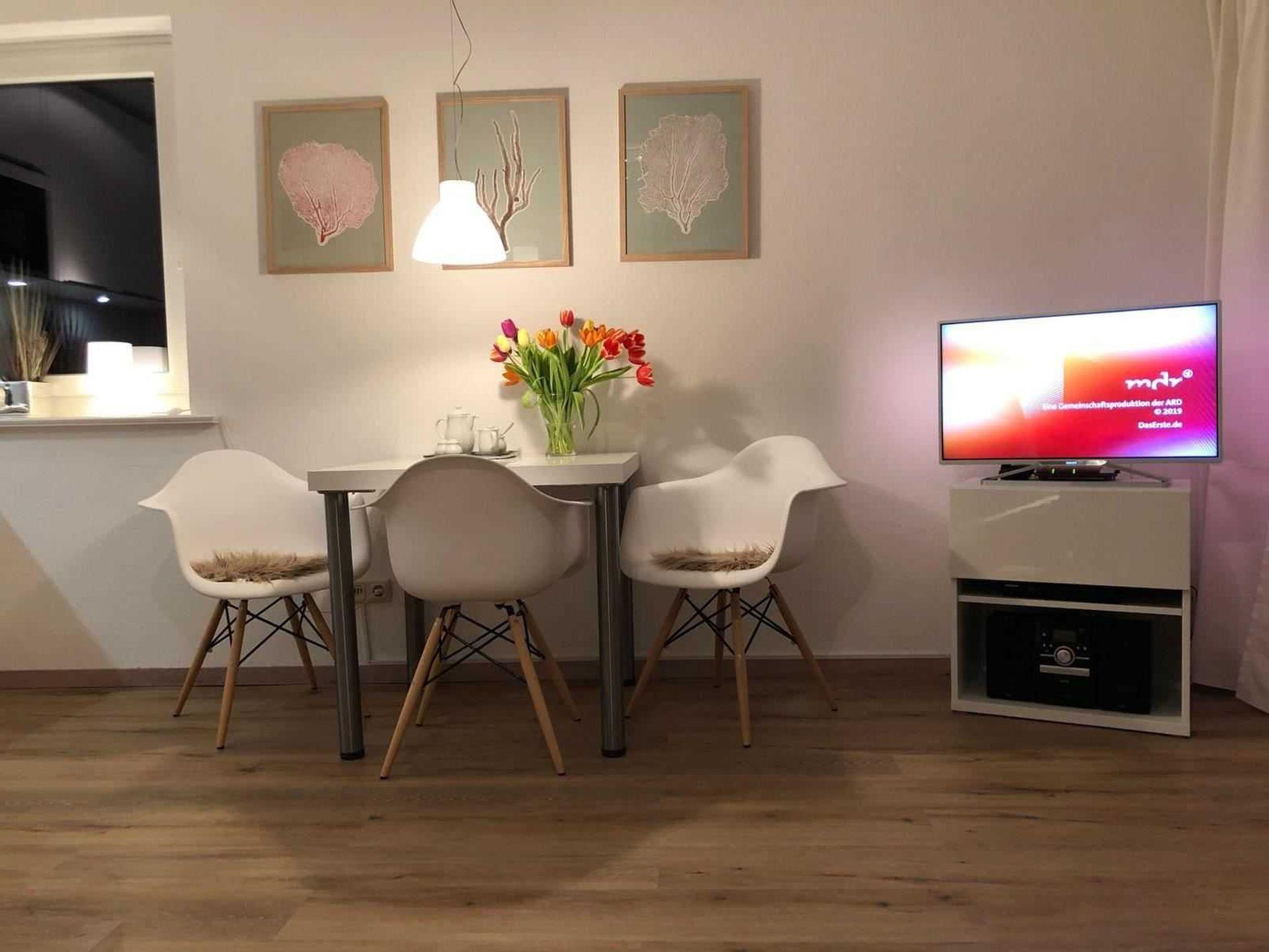 Schönes, helles 2-Zimmer-Apartment in exklusiver Strandlage im Schloss am Meer auf 2 Ebenen mit Süd-Westbalkon mit Meerblick. Küchenzeile mit Spülmaschine, Cerankochfeld, Mikrowelle, Toaster, Kühlschrank. Neben der normalen Kaffeemaschine steht für Sie eine Nespresso-Kaffeemaschine zur Verfügung. Bad mit Dusche/WC, Wohnzimmer mit gemütlicher Essecke, Wohlfühlsofa und Flachbildschirm. Schlafzimmer mit Doppelbett (180 x 200 cm) und großem Kleiderschrank. Aktuell haben wir neu möbliert: neue Küche, großes Wohlfühlsofa, Schränke, Kommoden, TV-Board, Gardinen usw., einen neuen Fussboden und Türen erneuert. Zusätzlich haben wir eine Bose-Bluetooth-Anlage (Mini II Soundlink) im Wohnzimmer und einen zweiten 32'' Flachbildschim im Schlafzimmer installiert. Weiterhin haben wir den 2-flammigen Herd gegen ein Ceranfeld mit 4 Kochplatten ersetzt.