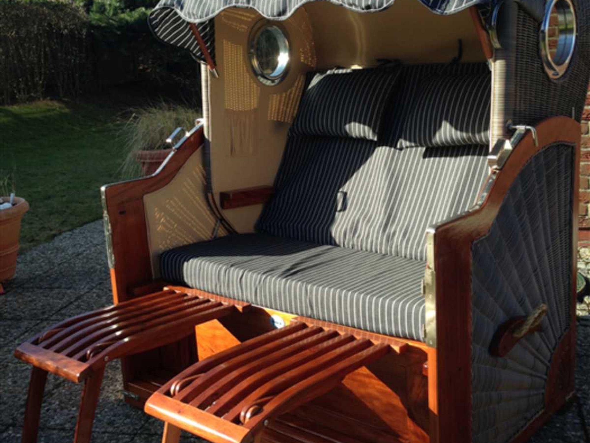 Auf der Terrasse , welche nach Süden ausgerichtet ist, steht für Sie eine gemütliche Lounge-Ecke, sowie ein hochwertiger Strandkorb zur Verfügung. Genießen Sie auf der Terrasse ruhige und entspannte Stunden