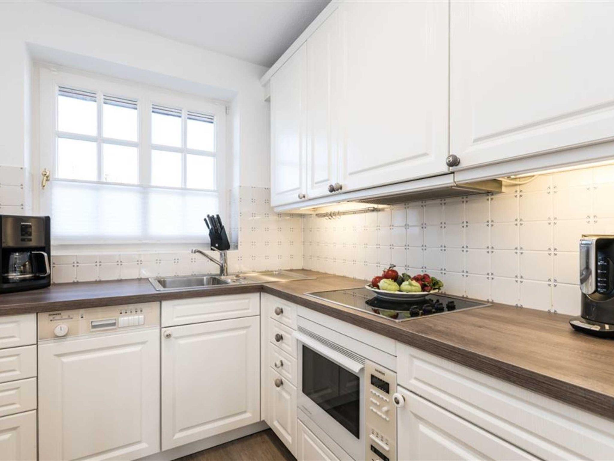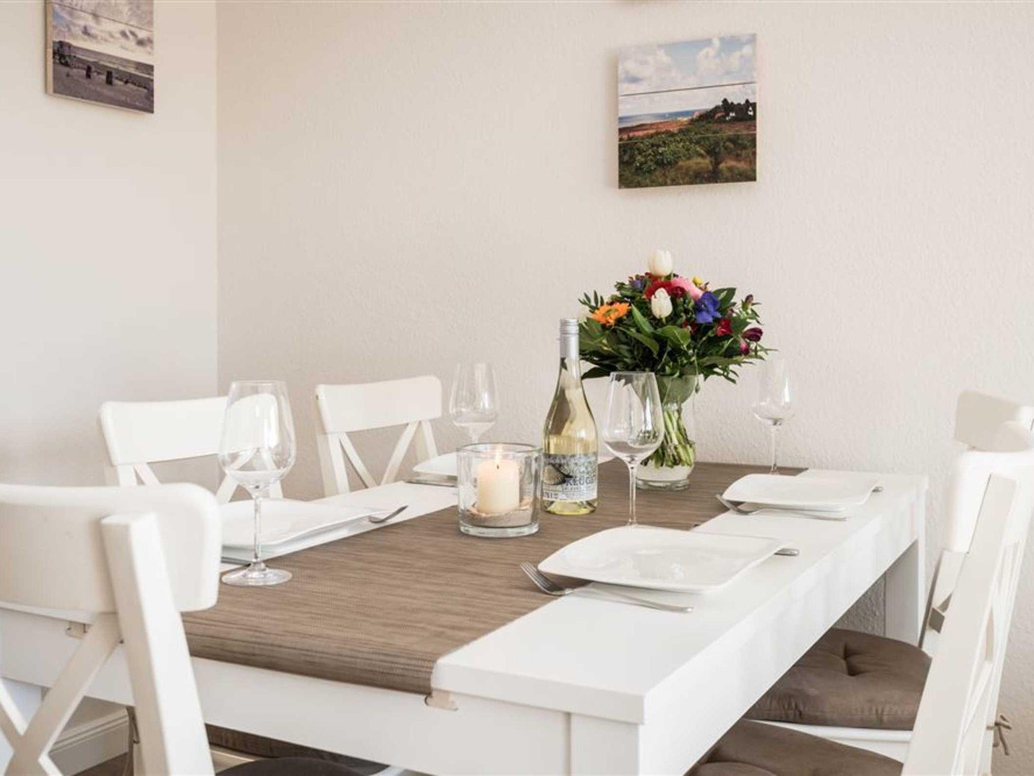 Ruhig aber dennoch in unmittelbarer Nähe zum Strand in Wenningstedt auf Sylt liegt diese schöne 3-Zimmerwohnung. Die Wohnung verfügt über 2 Schlafzimmer welche 2017 komplett renoviert wurden. Hier sind hochwertige Tischlereinbauten erfolgt und eine wunderbare harmonische Farbgebung sorgt für das Wohlbefinden. Beide Schlafzimmer sind mit Doppelbetten a 1,80m x 2,00 m ausgestattet und in beiden Schlafzimmern befinden sich internetfähige Flat-TV's. Im zweiten, kleinem Schlafzimmer kann in das Doppelbett nur von vorn eingestiegen werden. Beide Schlafräume finden Sie im Untergeschoss der Wohnung. Ebenfalls im UG der Wohnung finden Sie ein Badezimmer mit Dusche, Waschmaschine und Trockner sowie ein separates WC. Die ebenfalls separate Küche hält den hellen, freundlichen Ton der restlichen Wohnung und bildet damit einen idealen Übergang in den geräumigen Wohnbereich. Das Wohnzimmer verfügt über ein großes Sofa auf dem die ganze Familie nach einem langen, sonnigen Tag vor dem internetfähigen Flatscreen TV entspannen und den Tag ausklingen lassen kann.
