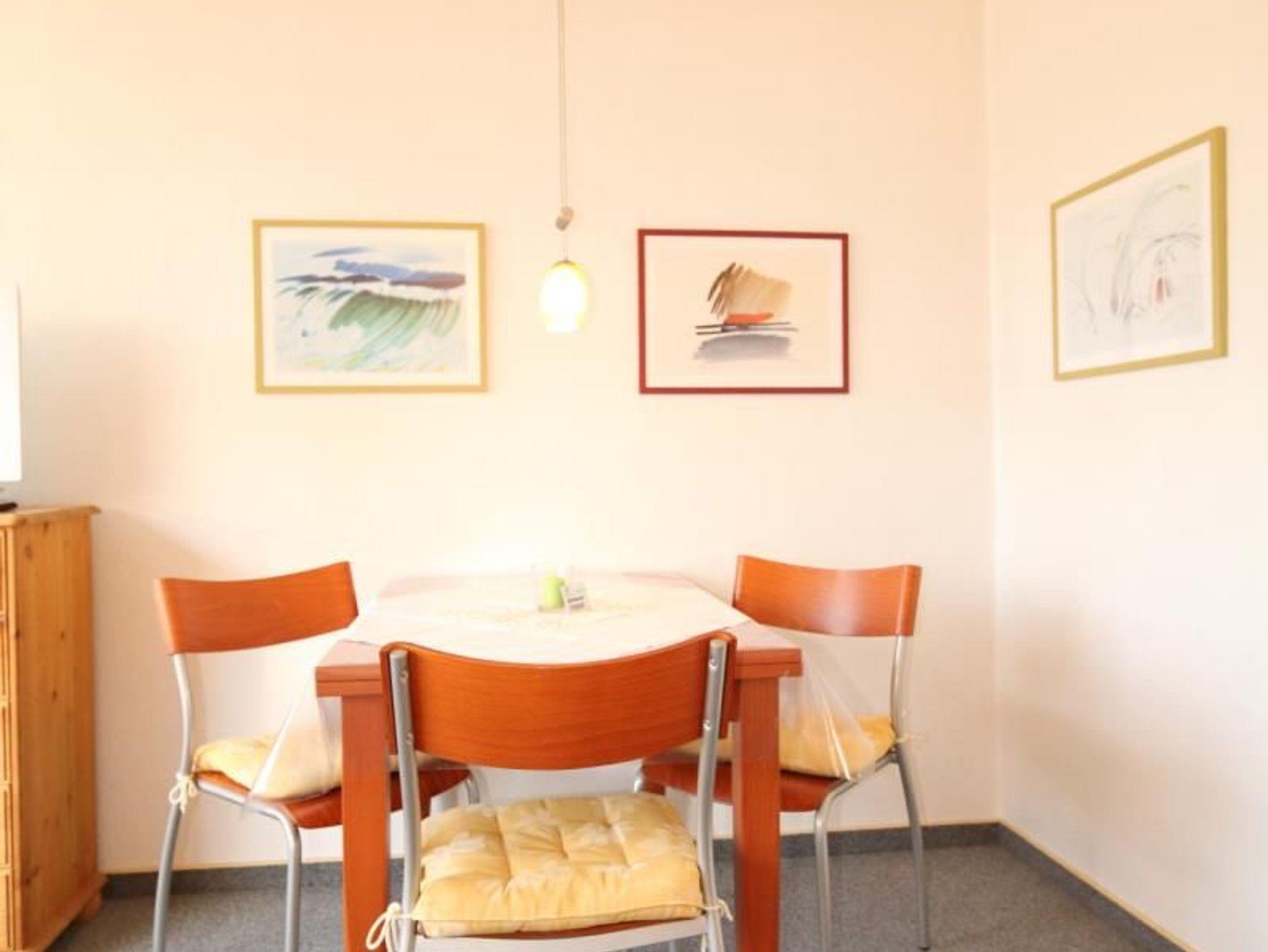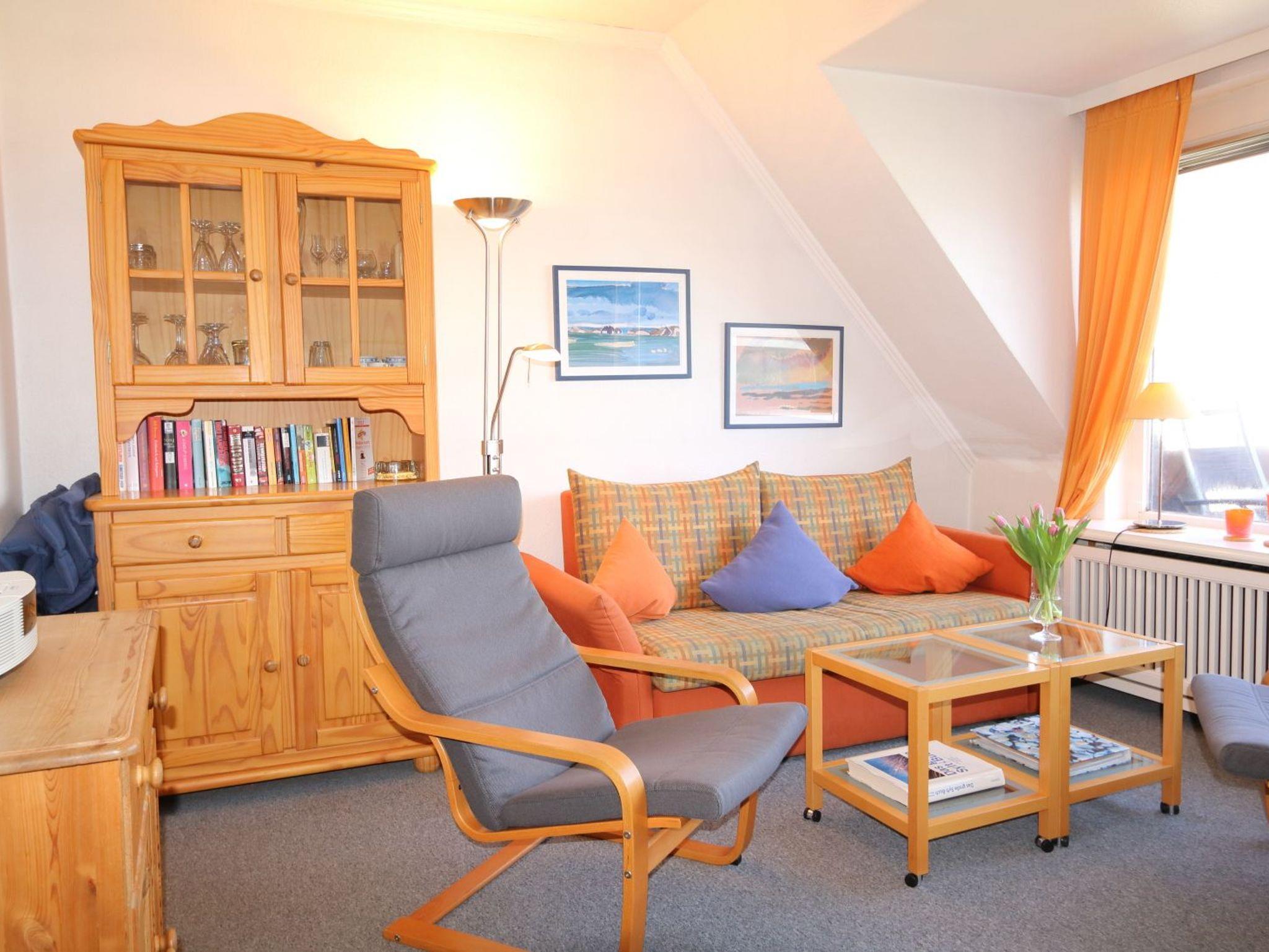 Ein gemütlicher Einrichtungsstiel in maritimen Farben erwartet Sie. Wohnzimmer mit bequemer Sitzgarnitur und Esstisch. Flachbildschirm und Radio. kostenloses W'Lan