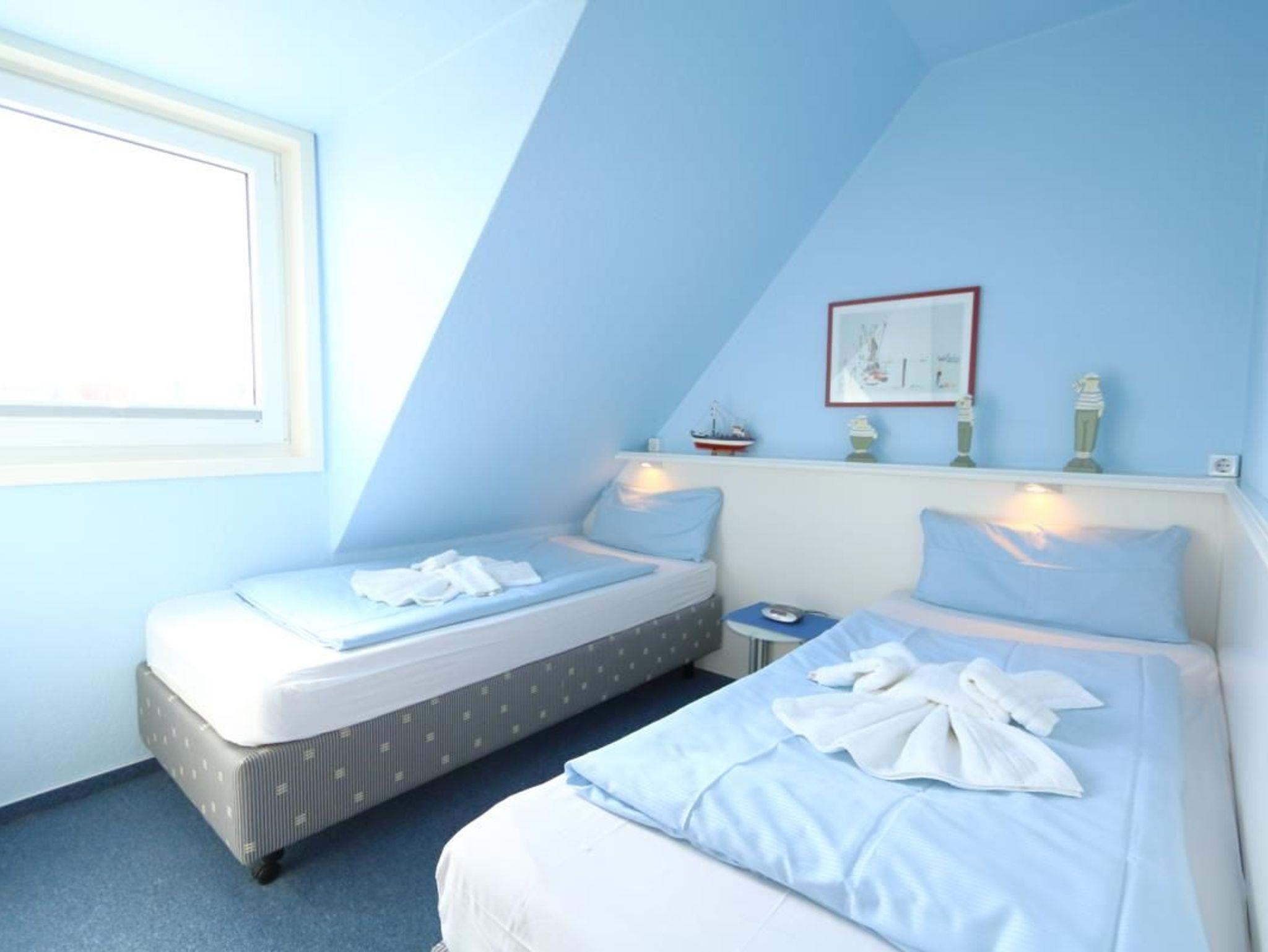 Ein Schlafzimmer mit Einzelbetten sowie Kleiderschrank.