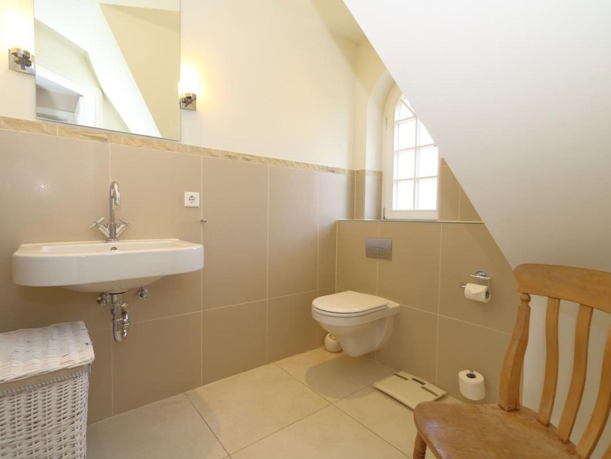 WC, Waschbecken, Fußbodenheizung, Dusche (bodengleich) Ausreichend Handtücher und Vorleger.
