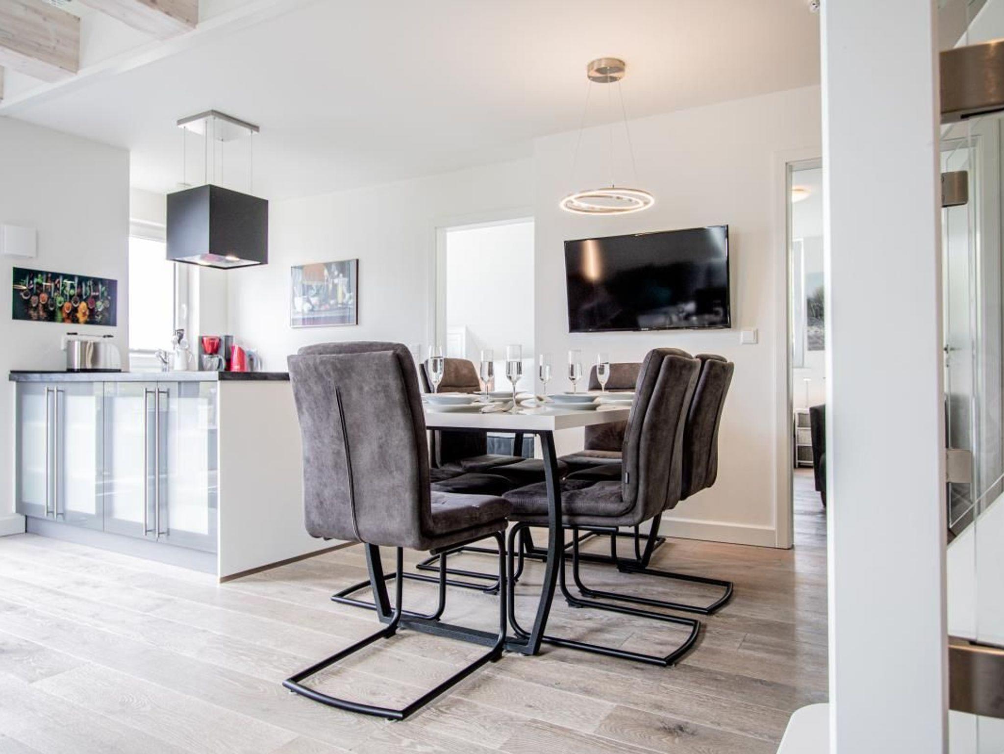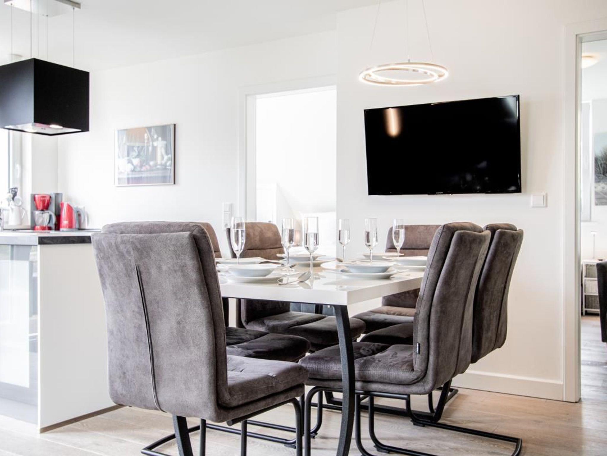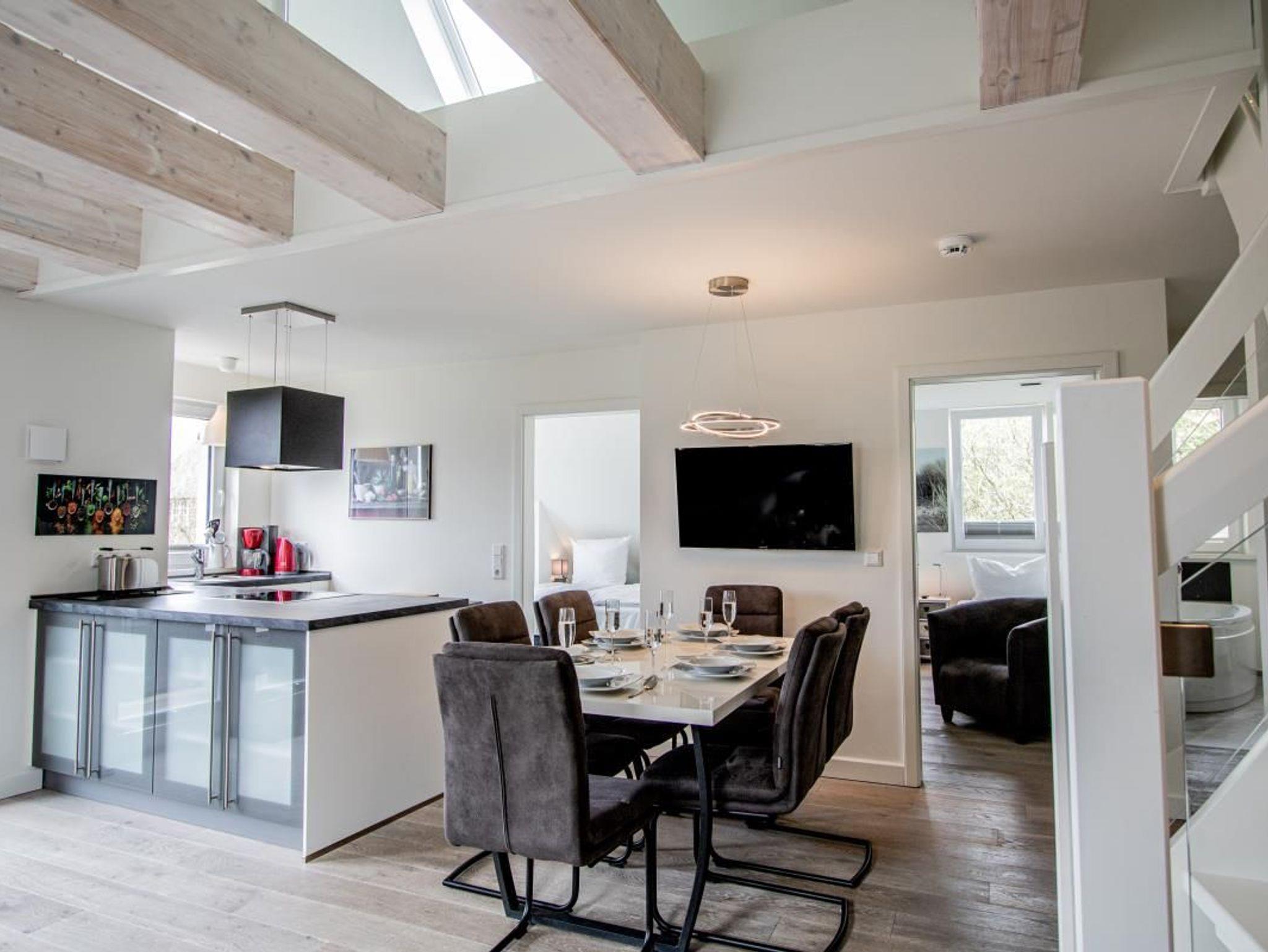 Das moderne Appartement Asgard in Wenningstedt bietet Sauna, Kamin und Balkon mit Heideblick für erholsame Urlaubstage.