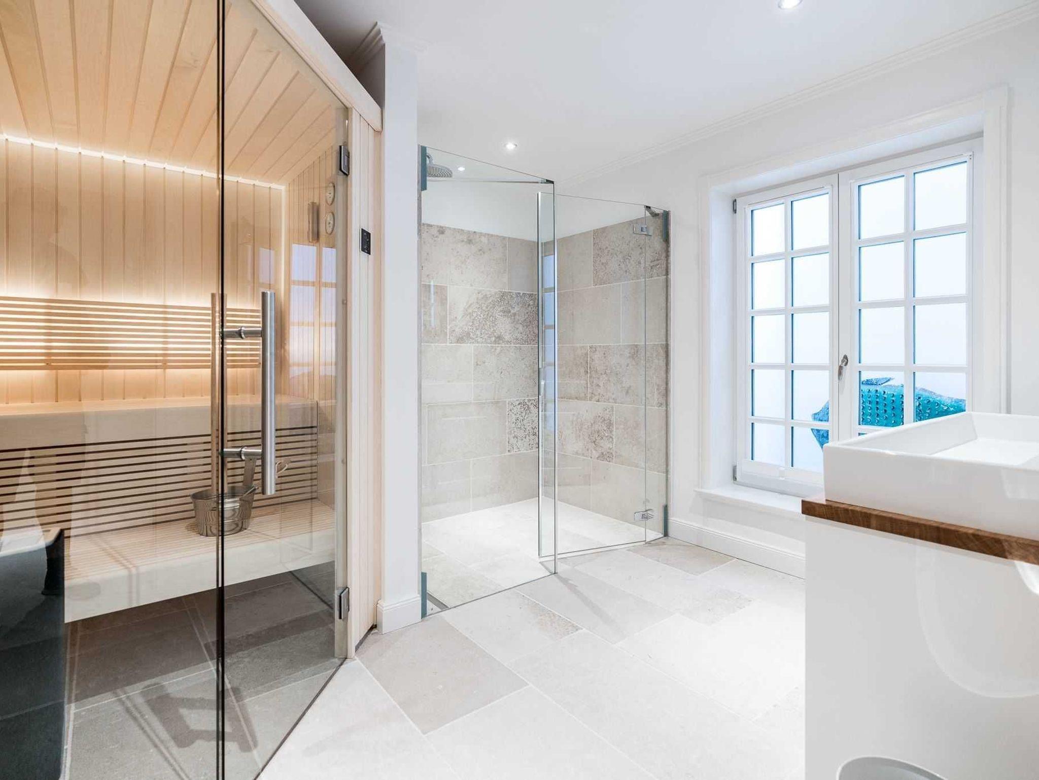 Alle Geschosse verfügen über Fußbodenheizung und in den Bädern sind zusätzlich Handtuchheizkörper vorhanden. Neben dem großen Flat-Screen im Wohnbereich verfügen zudem alle Schlafzimmer über einen Flachbildfernseher.