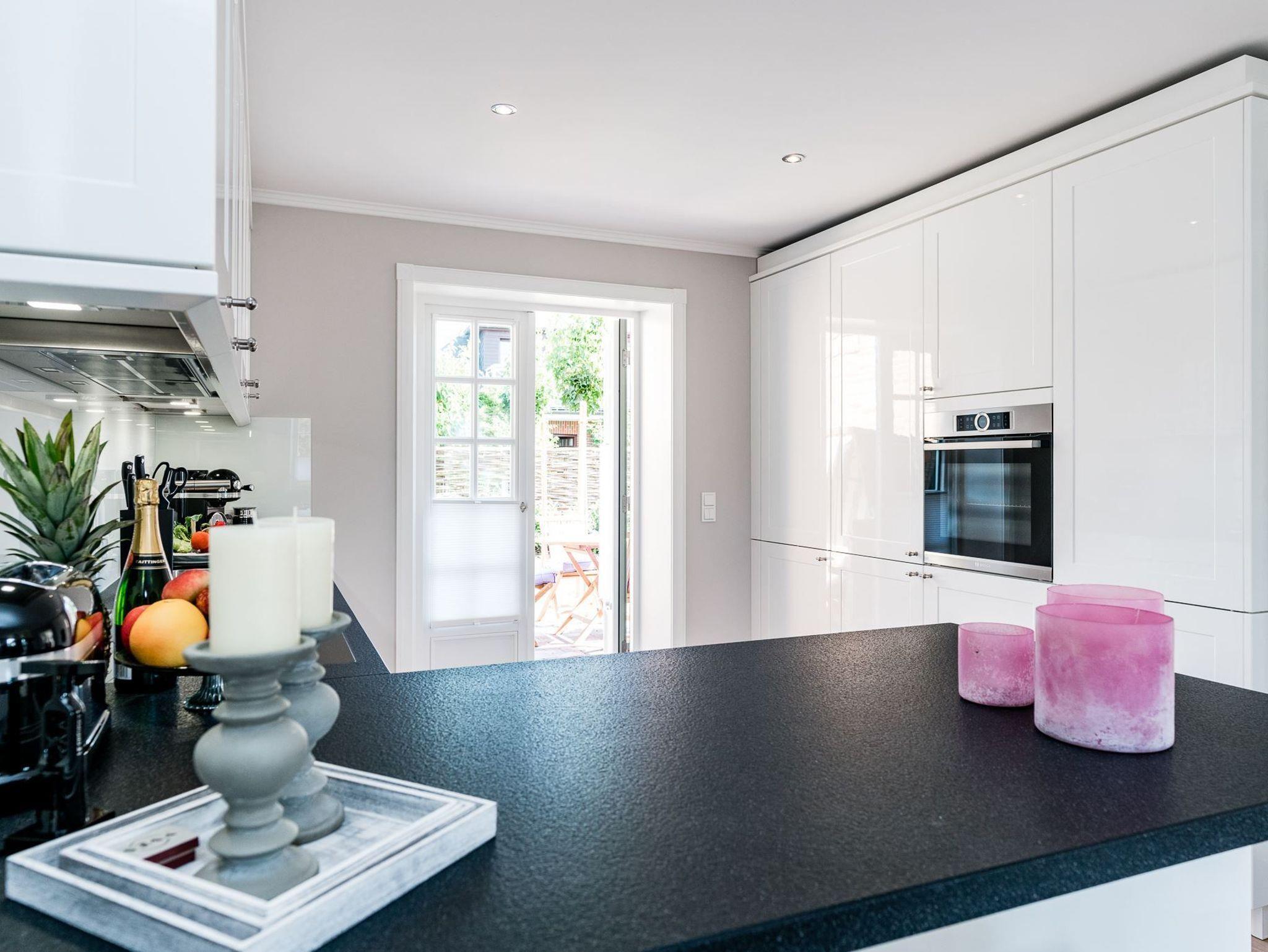 Im EG finden Sie eine großzügige und hochwertige Einbauküche in offener Bauweise, die sich mit dem ebenfalls großzügigem Essbereich verbindet. In der Küche werden Sie von KitchenAid eine Nespressomaschine, eine Filterkaffeemaschine u. einen Wasserkocher vorfinden. Zusätzlich sind auf dieser Ebene ein Gäste-WC sowie ein geräumiger Eingangsbereich mit Garderobe vorhanden.