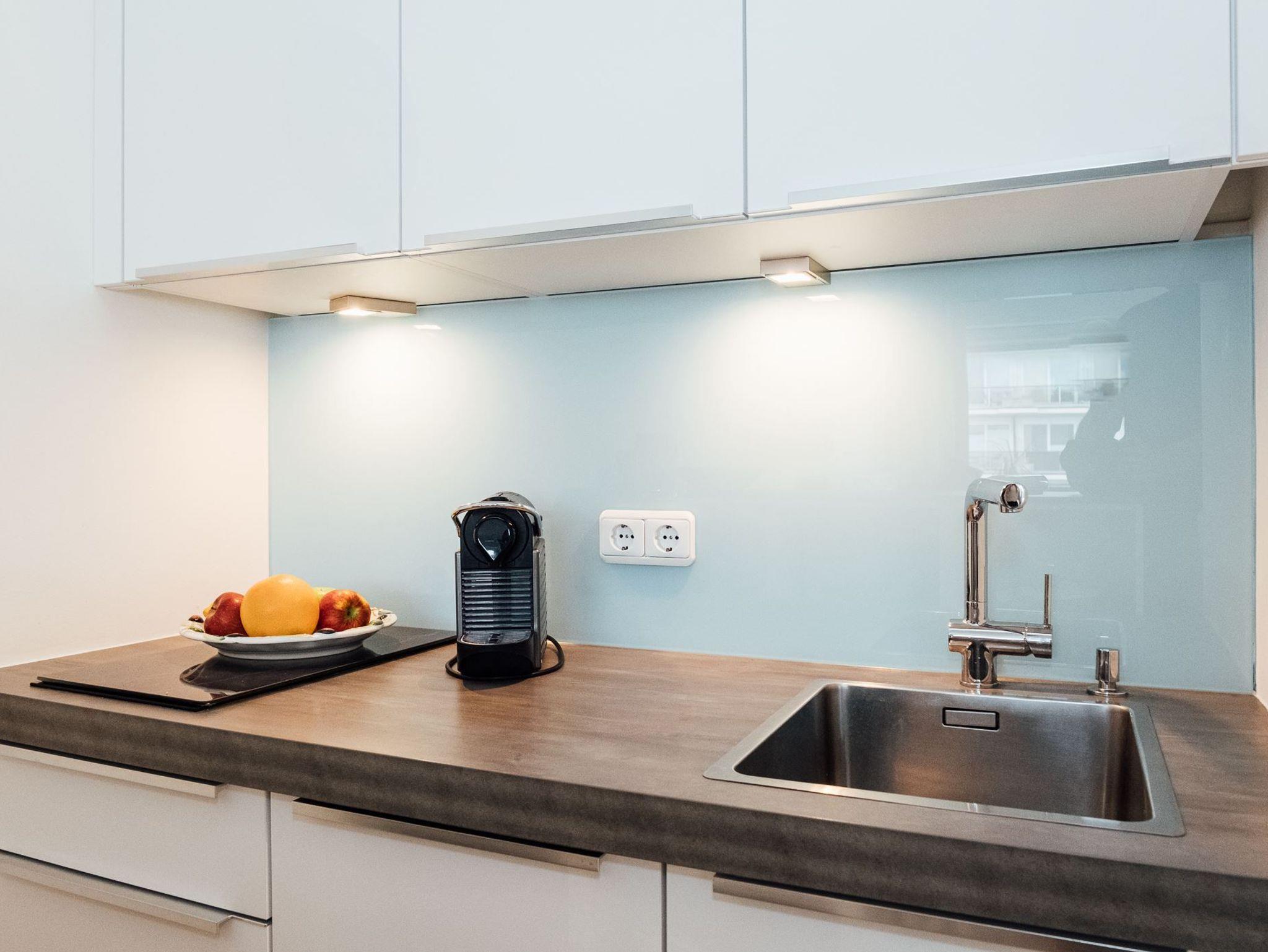Der moderne Wohn/Schlafraum mit offener Einbauküche bietet ein komfortables Boxspringbett. Eine moderne Ausstattung, u.a. mit hochwertigem Flat-TV, Stereoanlage mit Bluetooth-Anschluss, DVD-Player sowie W-Lan sind selbstverständlich. Der mit bequemen Sesseln und einen kleinen Tisch möblierte Balkon vervollständigt das schöne und elegante Gesamtbild. Wir wünschen Ihnen viel Spaß und gute Erholung.