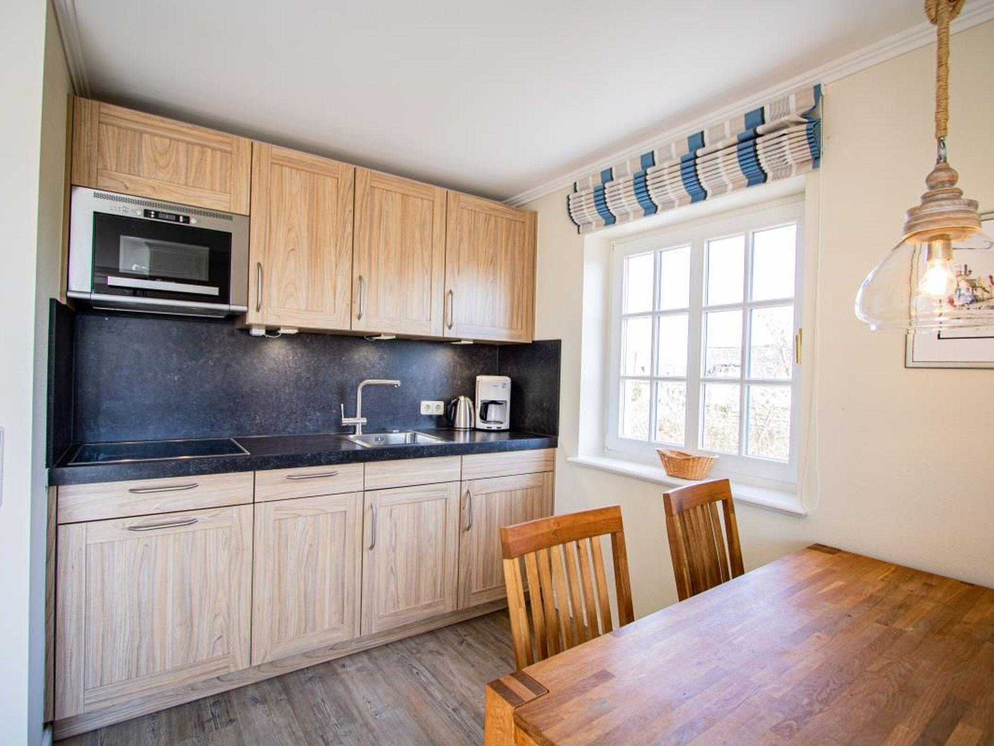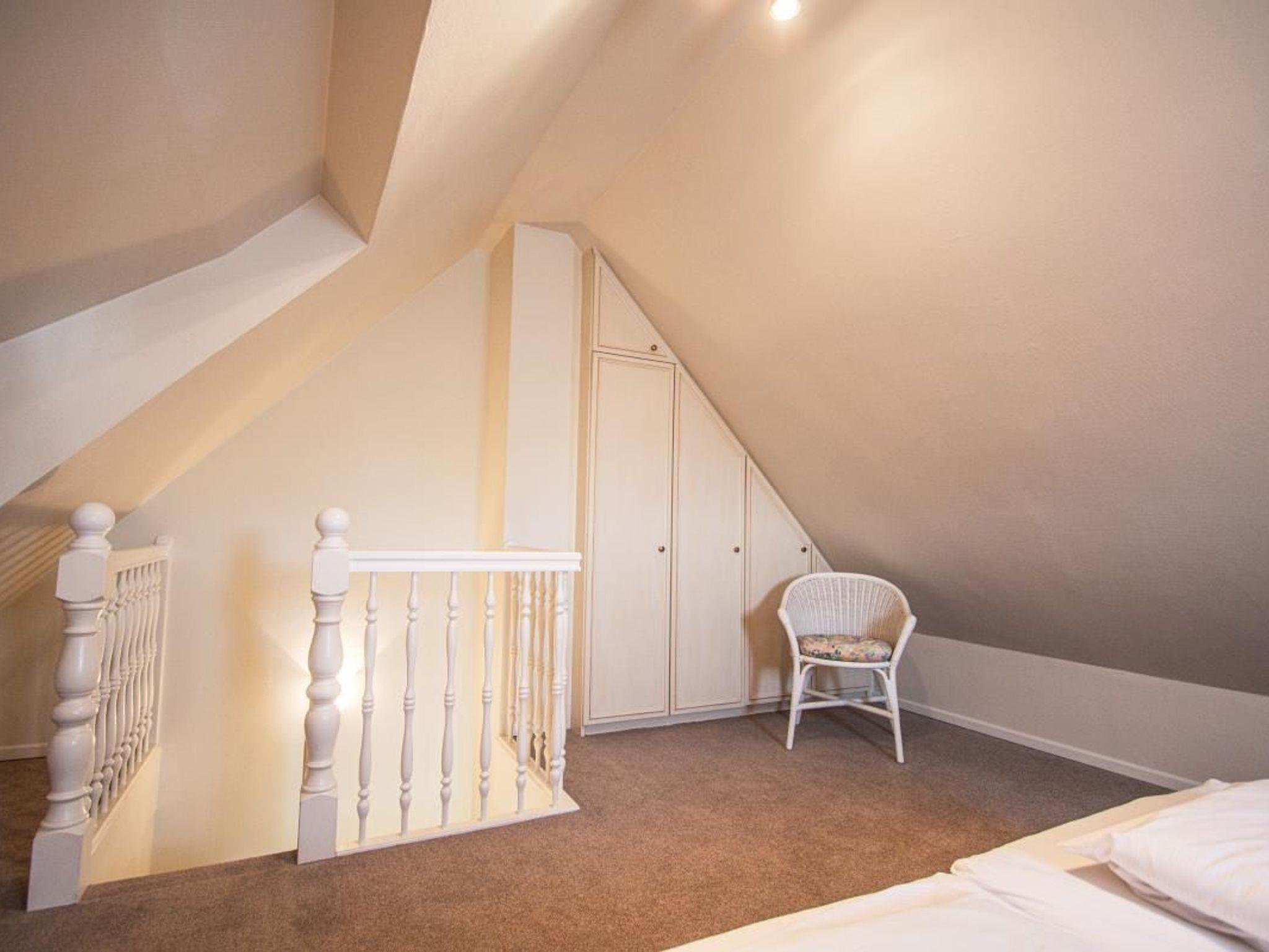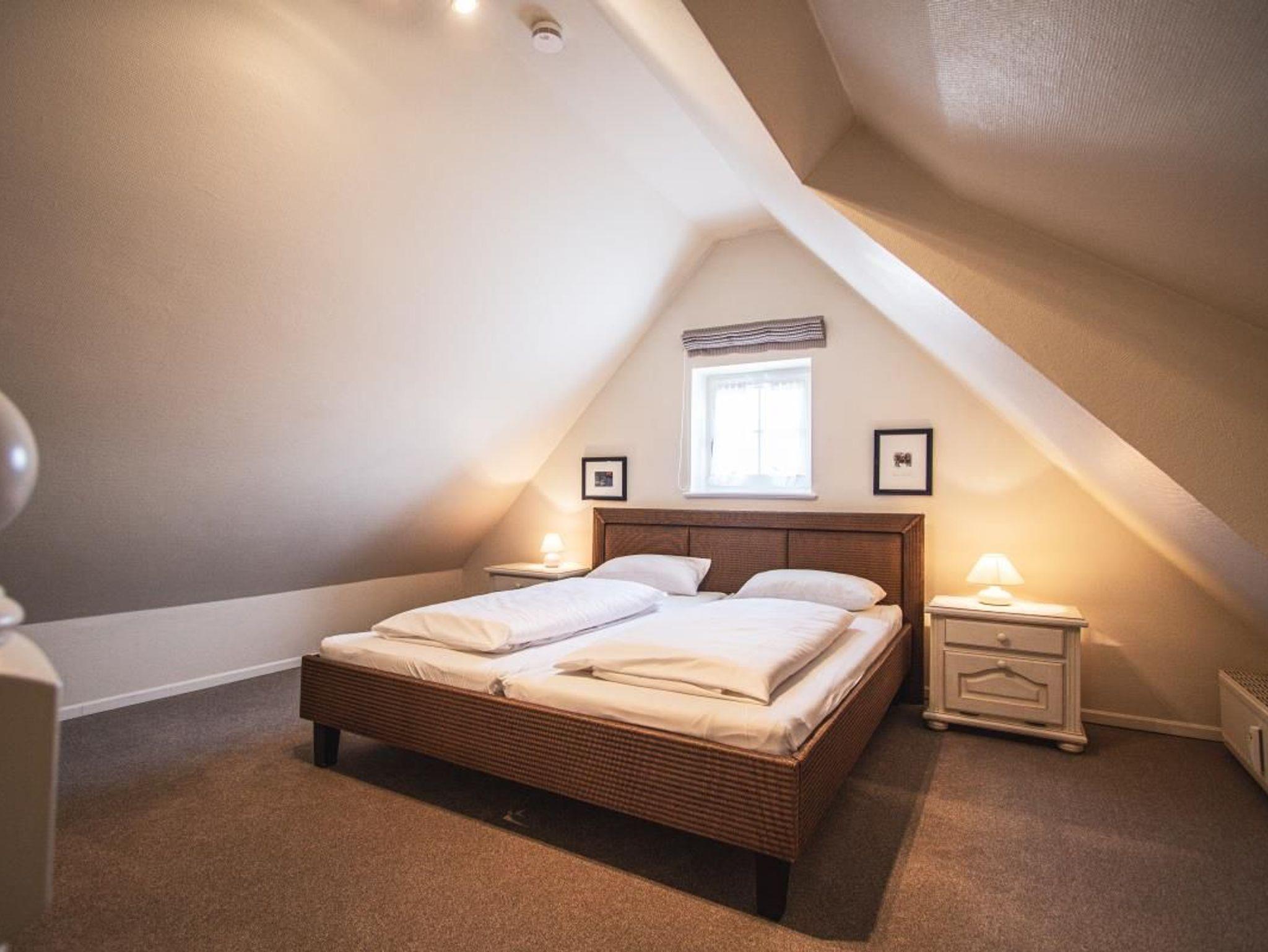 Das exclusive Obergeschoss Appartement liegt in einer Sackgasse, nur wenige Minuten bis zum Strand. Im OG der Wohn/Essbereich mit angrenzender Küchenzeile, ein neues Duschbad/WC und ein Doppelschlafzimmer. Ein weiterer Schlafzimmer mit 2 Einzelbetten ist im Dachgeschoss. Das Appartement hat Kabel-TV, Mini Anlage bzw. Radio,W-Lan, Geschirrspüler,einen Balkon zum Süden mit Gartenmöbeln, sowie eigene Sonnenkule mit Strandkorb,geschützt gelegen hinter dem Haus.