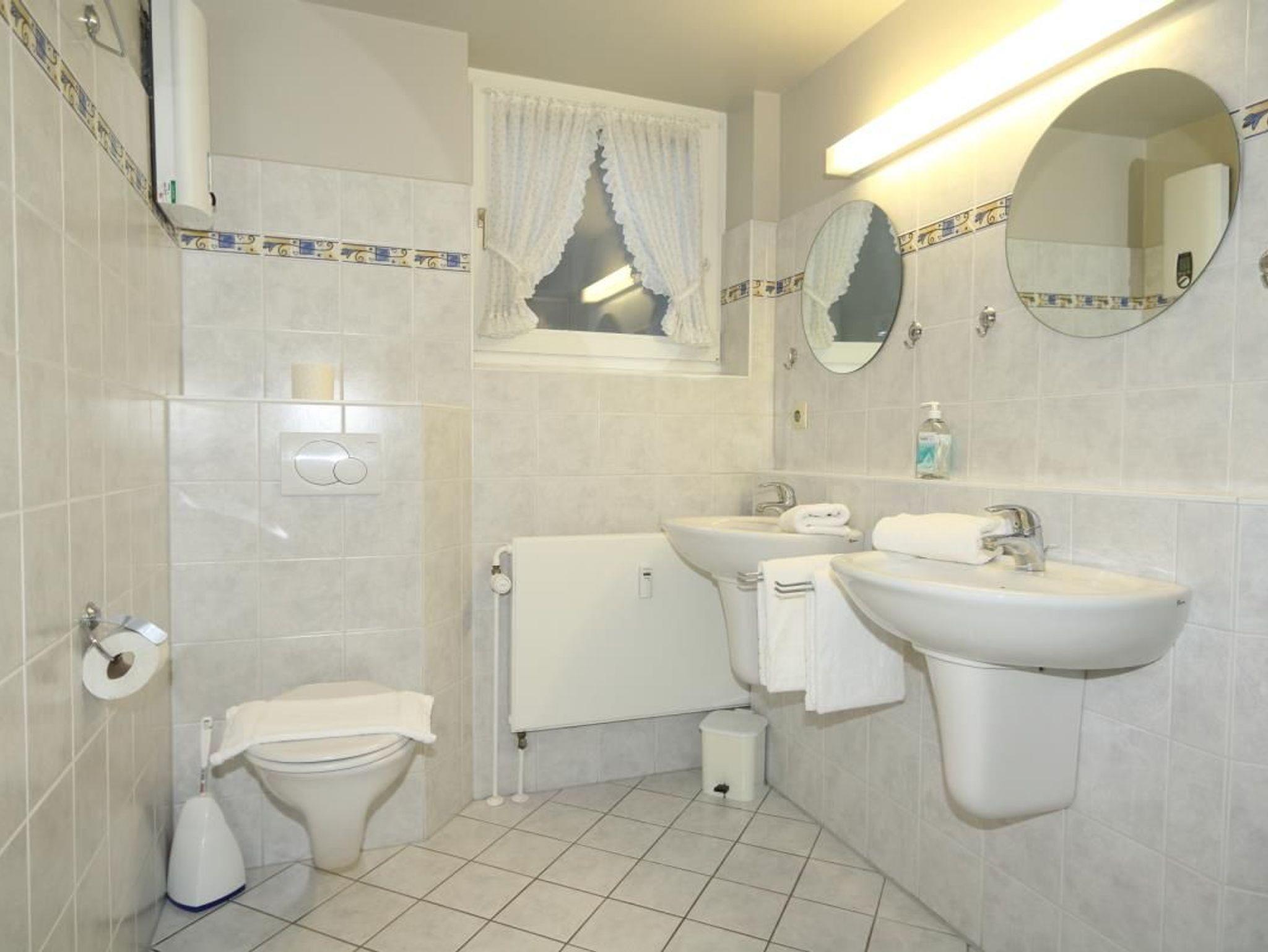 Badezimmer mit Dusche, WC, Waschtisch. Ausreichend Handtücher und Vorleger.