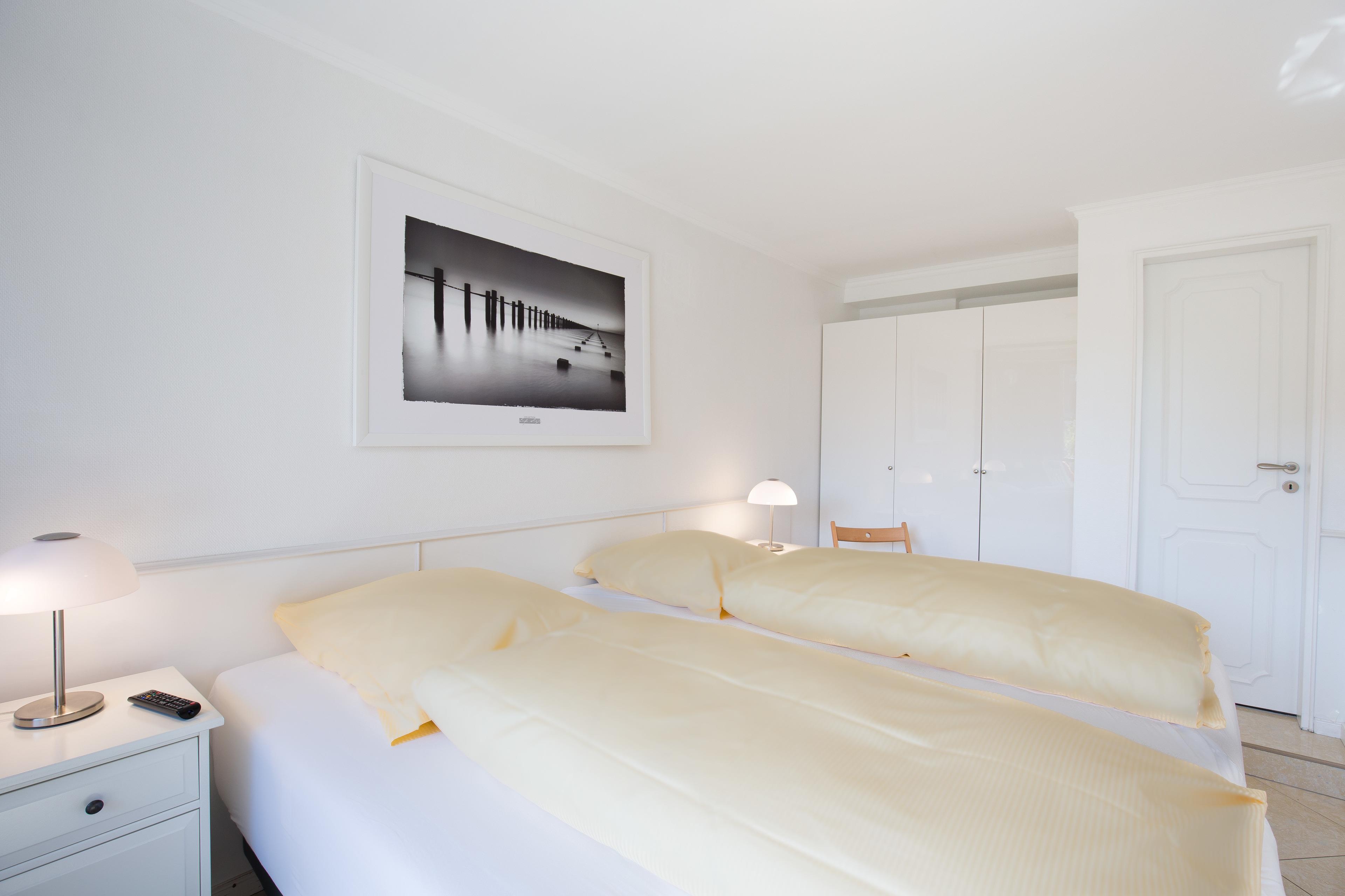 60m² große, strandnahe und lichtdurchflutete 3-Zimmer-Ferienwohnung mit Südbalkon, 2 Schlafzimmern und Duschbad mit Whirlpool.