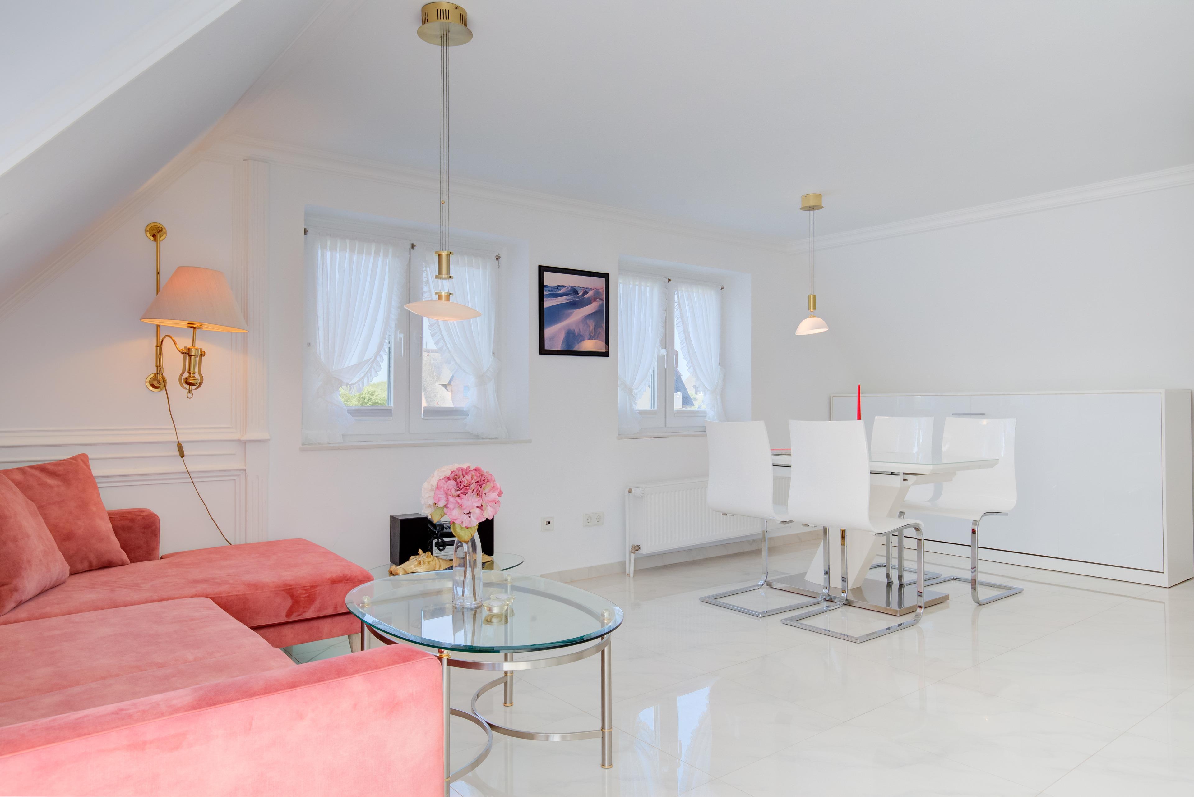 Diese charmante und lichtdurchflutete ca. 55 m² 2-Zimmer-Ferienwohnung liegt separat in einem Zweifamilienhaus. Treten sie hinein in das großzügige Wohn/Schlafzimmer mit hochwertigen Polstermöbeln und separatem Essplatz.