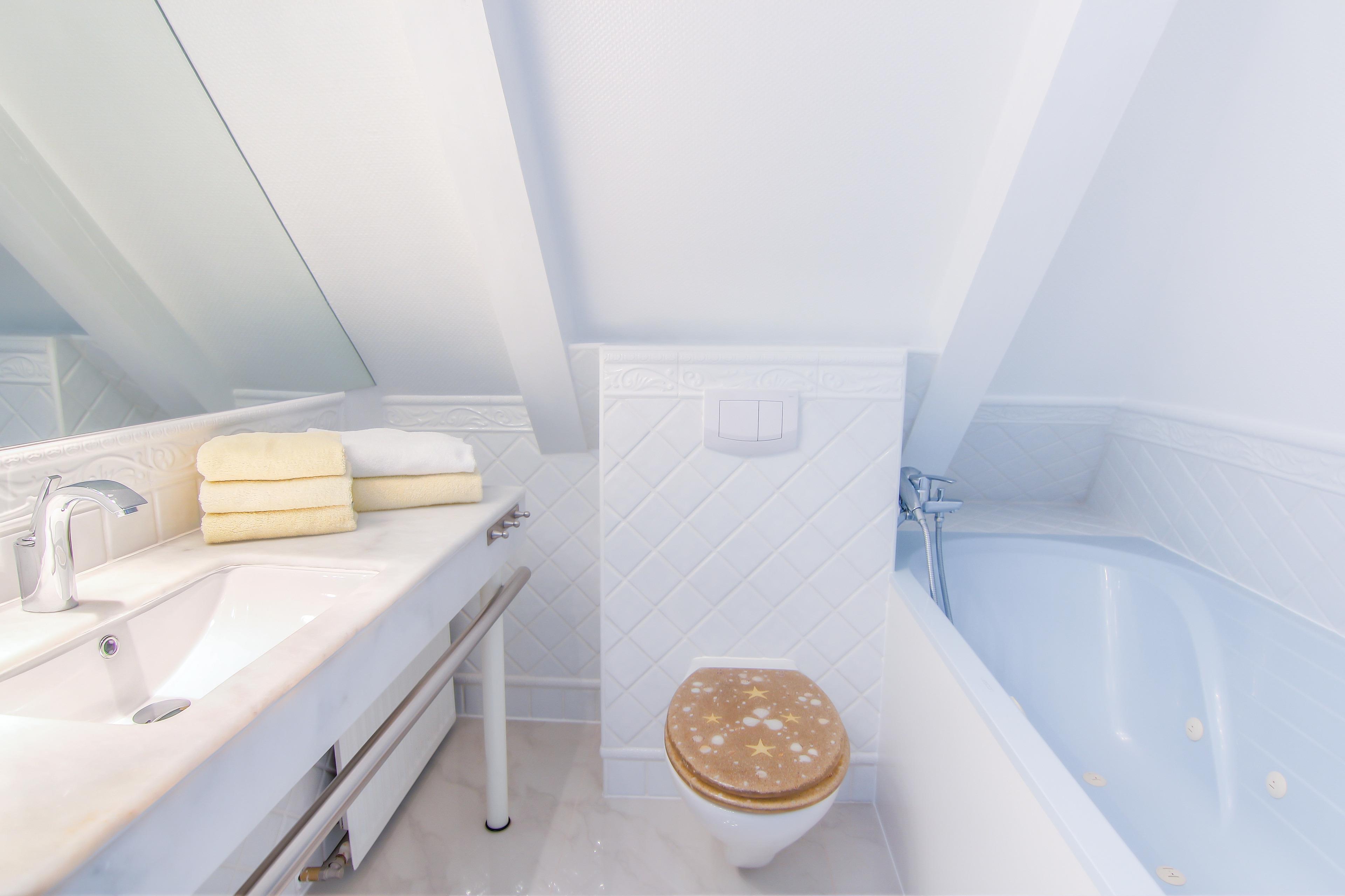 Richtig relaxen kann man im Wohlfühlbad mit Whirlpool oder im unteren großen Duschbad..