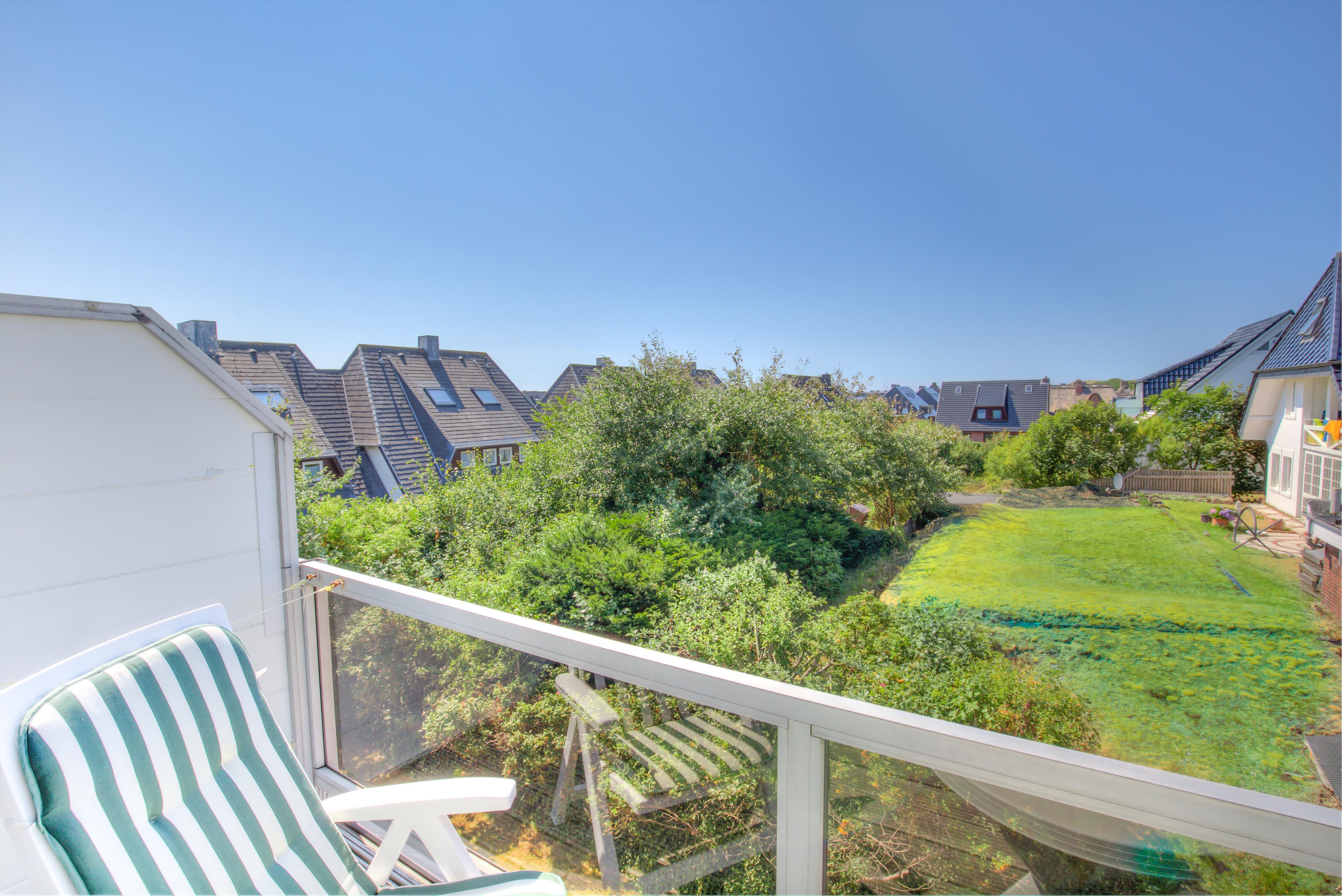 Der große Süd-Westbalkon, mit Gartenmöbel ausgestattet, verspricht idyllische Stunden unter der Sylter Sonne.