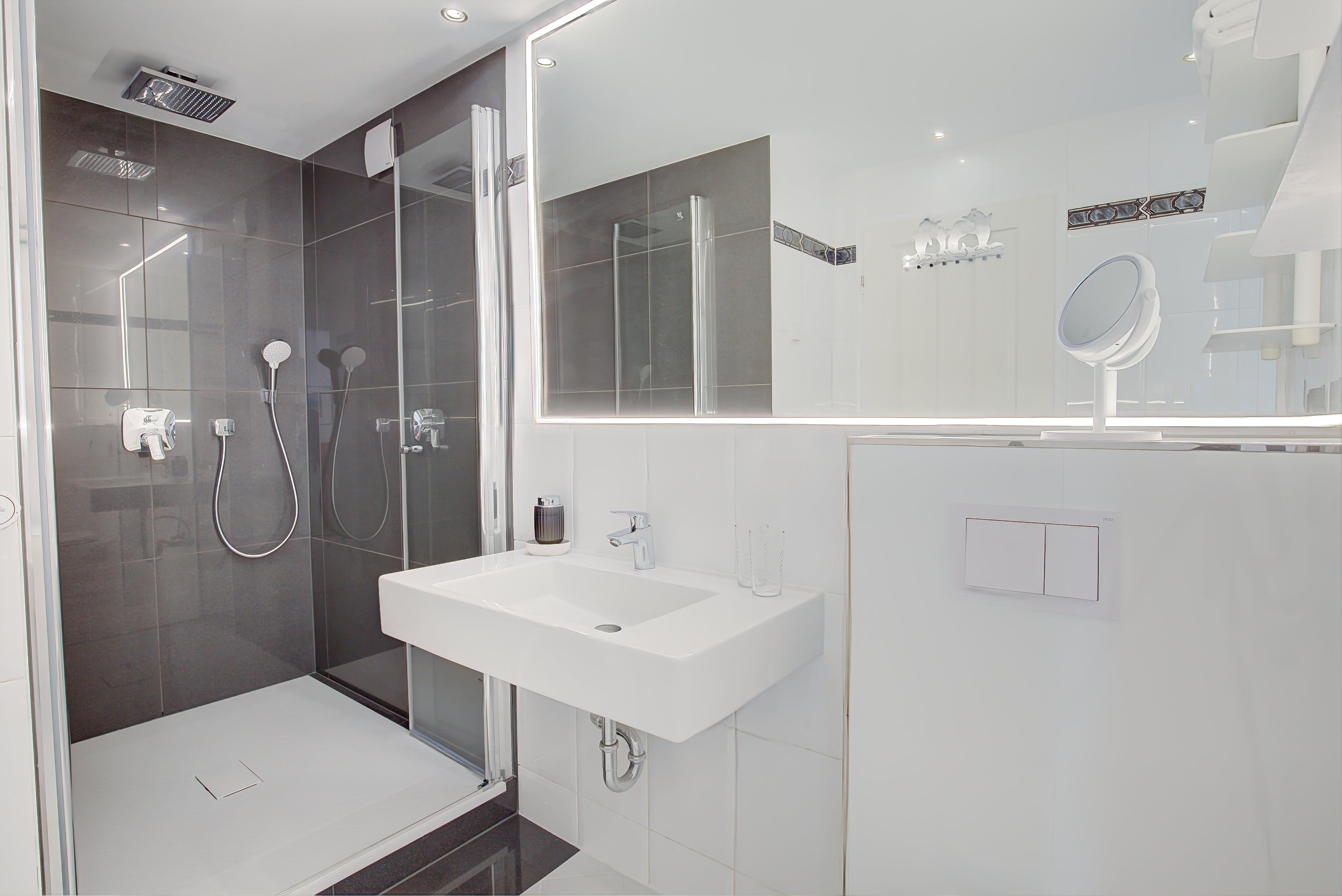Ein komfortables Bad mit großer Regendusche ergänzen das Angebot.