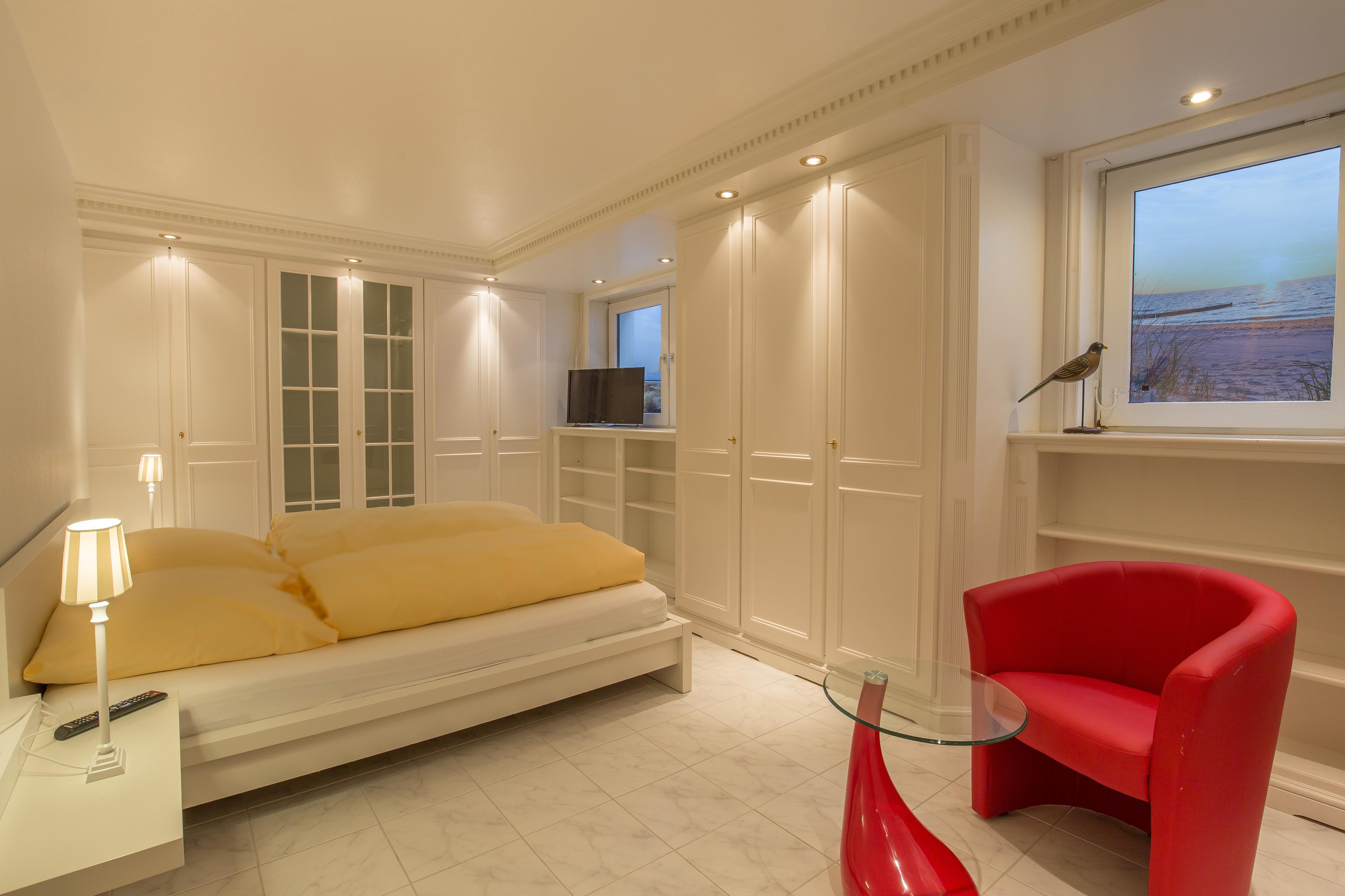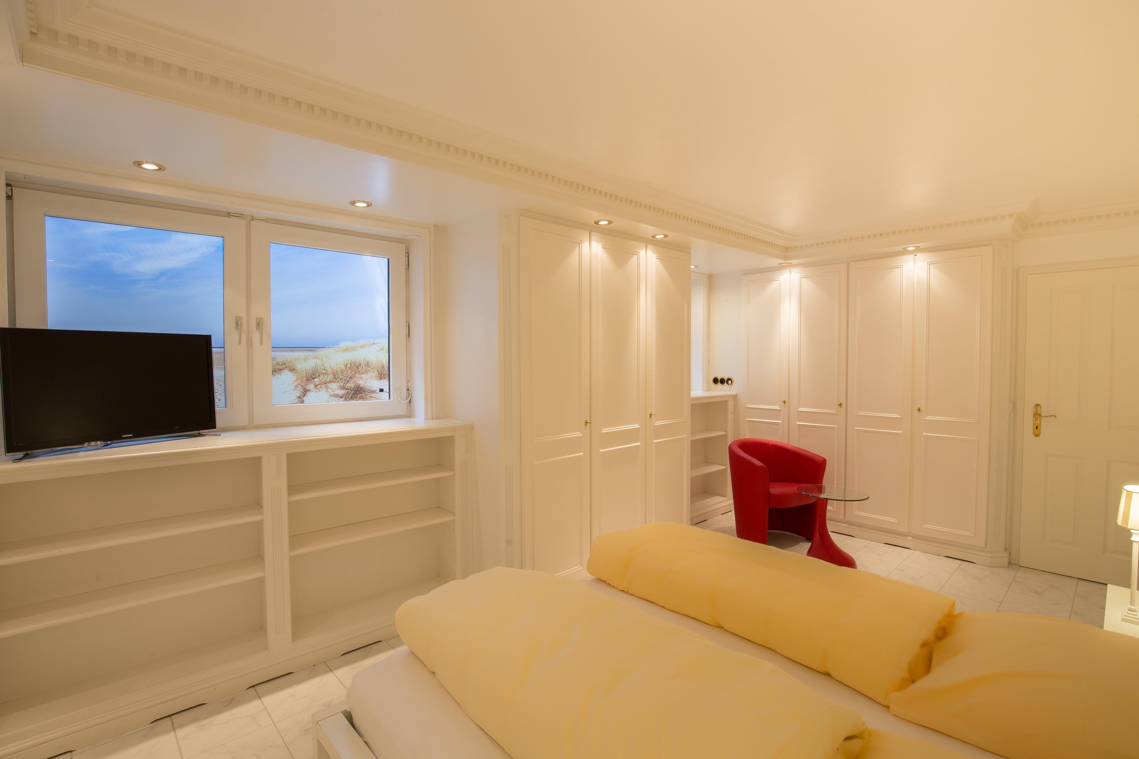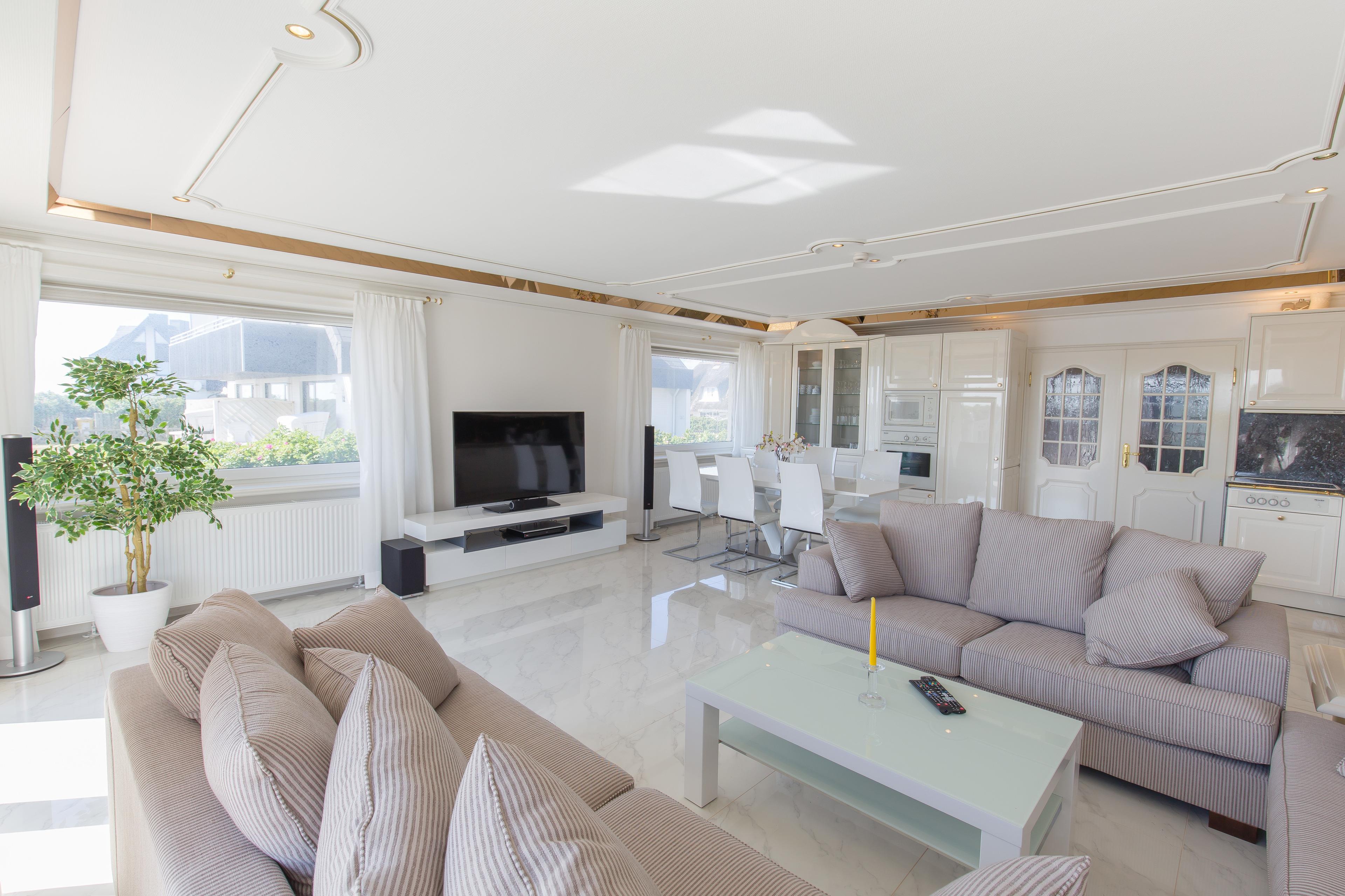 140 m² große 4 Zimmer-Ferienwohnung mit exklusiver Ausstattung, Meerblick und Südterrasse, 3 Schlafzimmern und 2 Duschbädern in Wenningstedt.