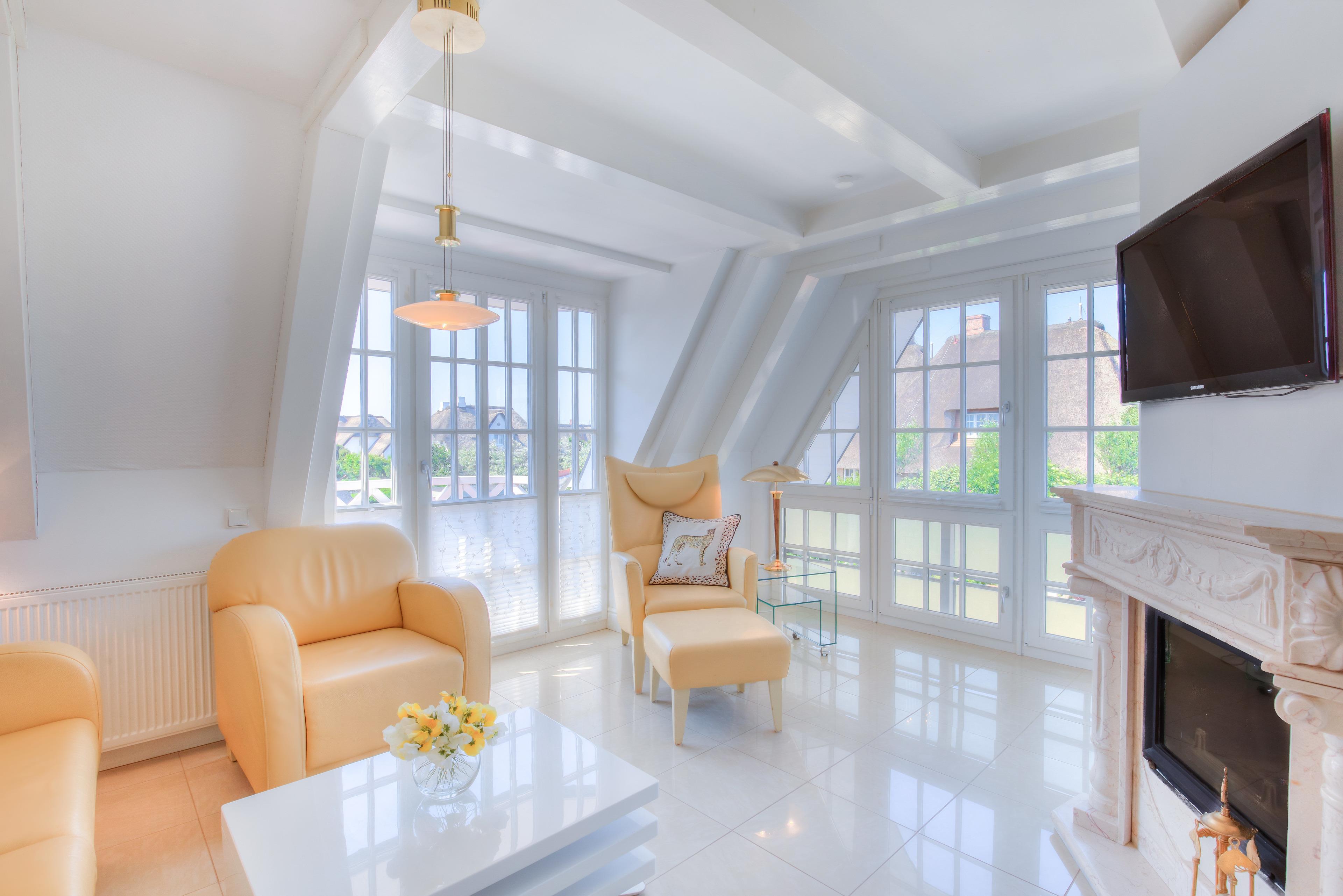 Lichtdurchflutete Dachgeschosswohnung mit Whirlpool, Kamin und zwei Balkonen in Wenningstedt-Braderup auf Sylt.