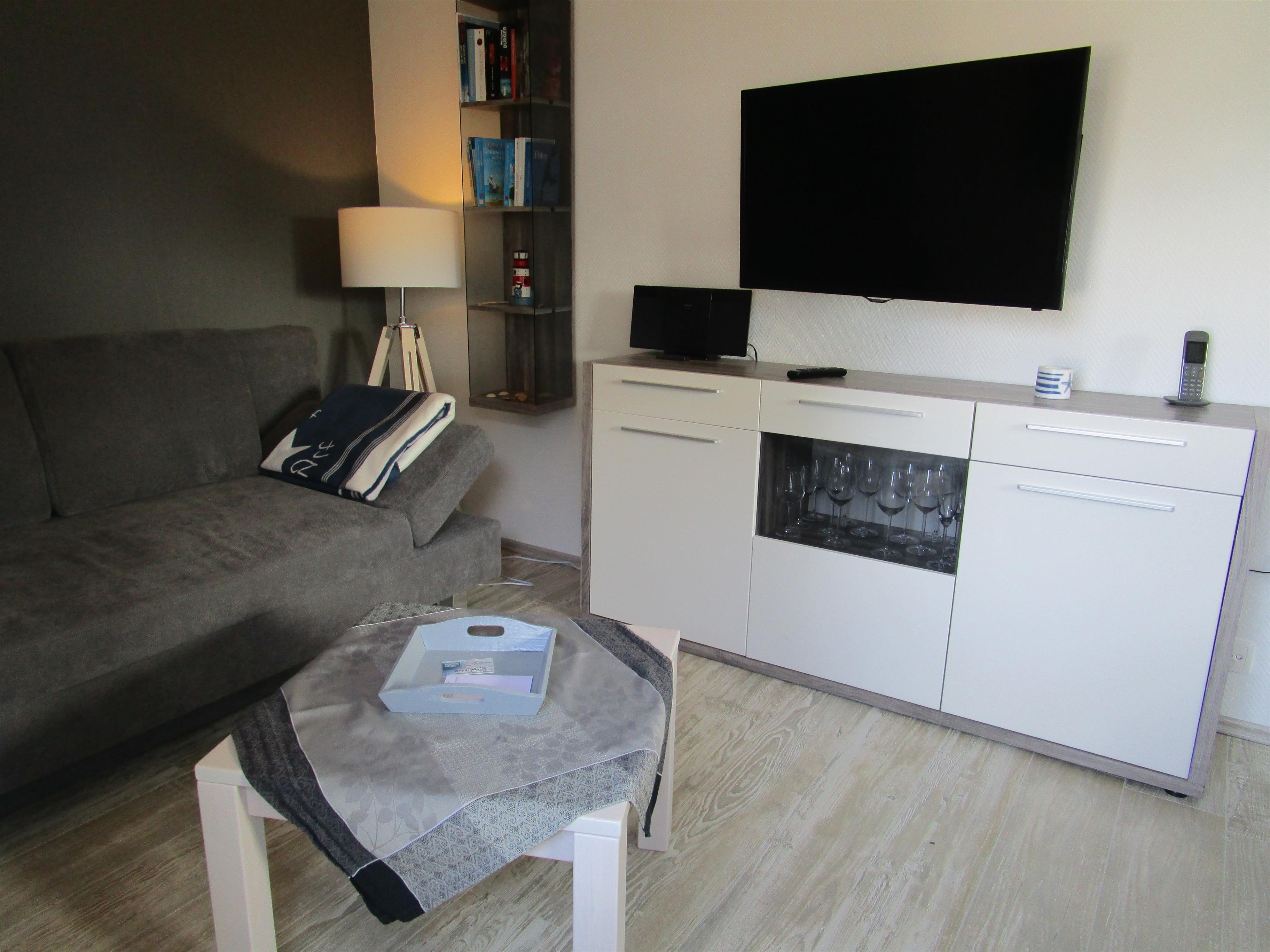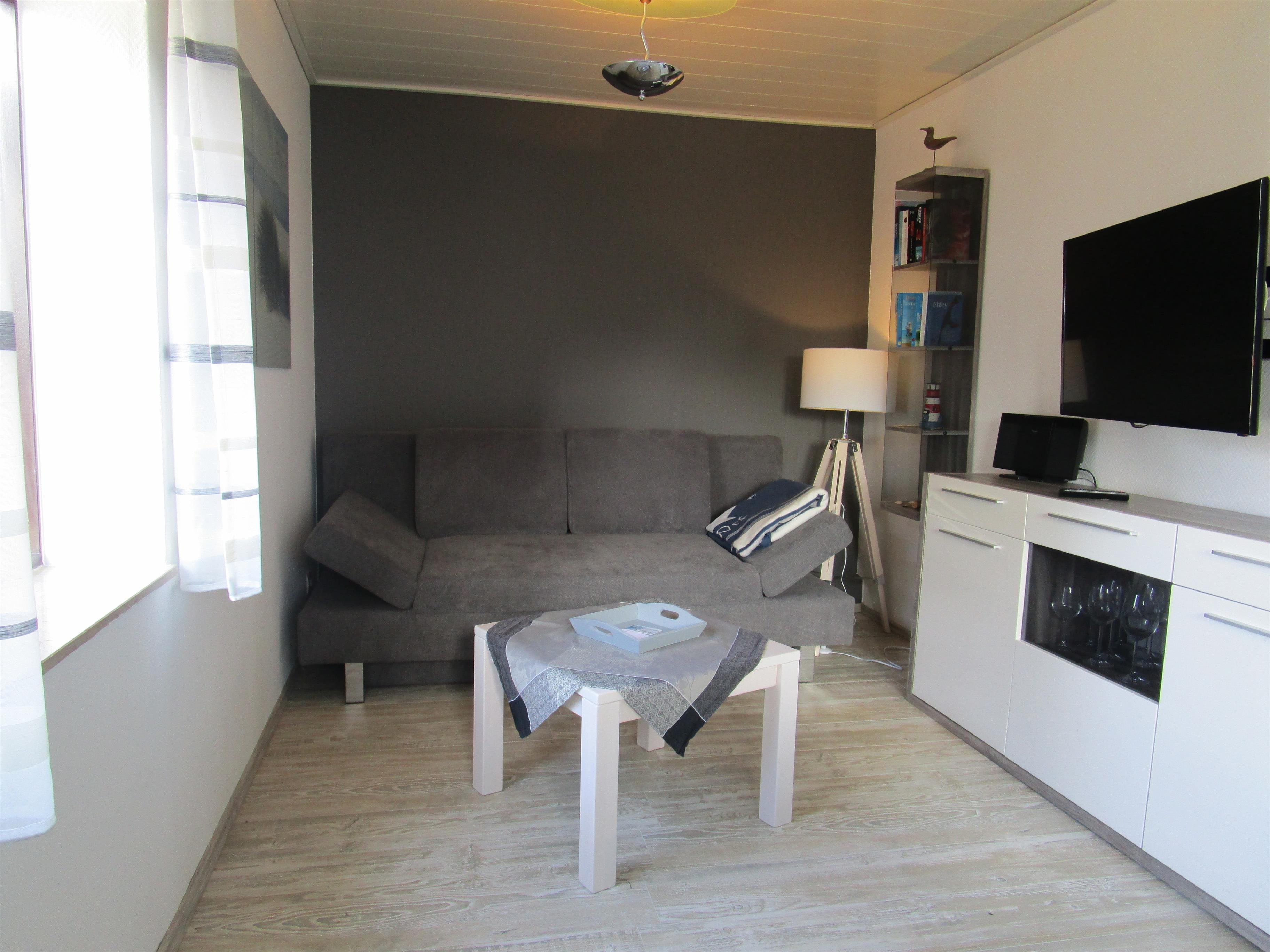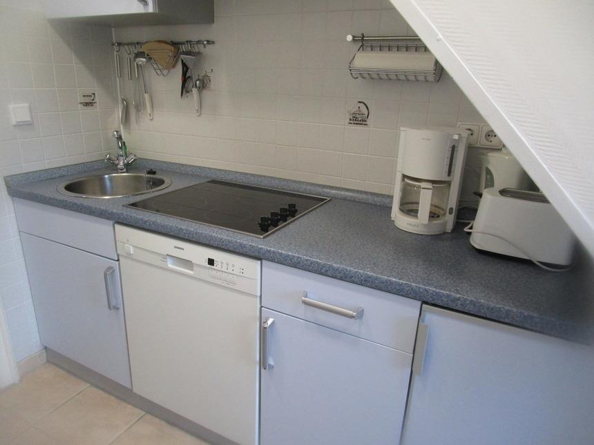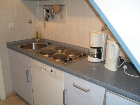 Die Ferienwohnung für 2 Personen befindet sich in einen kleinen Häuschen mit nur 2 Ferienwohnungen. ( Kiekin-Kiekut). Im EG befindet sich der Wohnraum, das Bad mit WC, sowie im Flur die Küchenzeile.. Im OG ist der Schlafraum auch mit einen Fernseher ausgestattet. Die Küchenzeile ist komplett ausgestattet wie Geschirrspüler, Kaffeemaschine, Toaster , Wasserkocher usw. Die Wohnung hat einen eigenen Eingang . Zur eigenen Terrasse gehören Gartenmöbel und der Strandkorb.