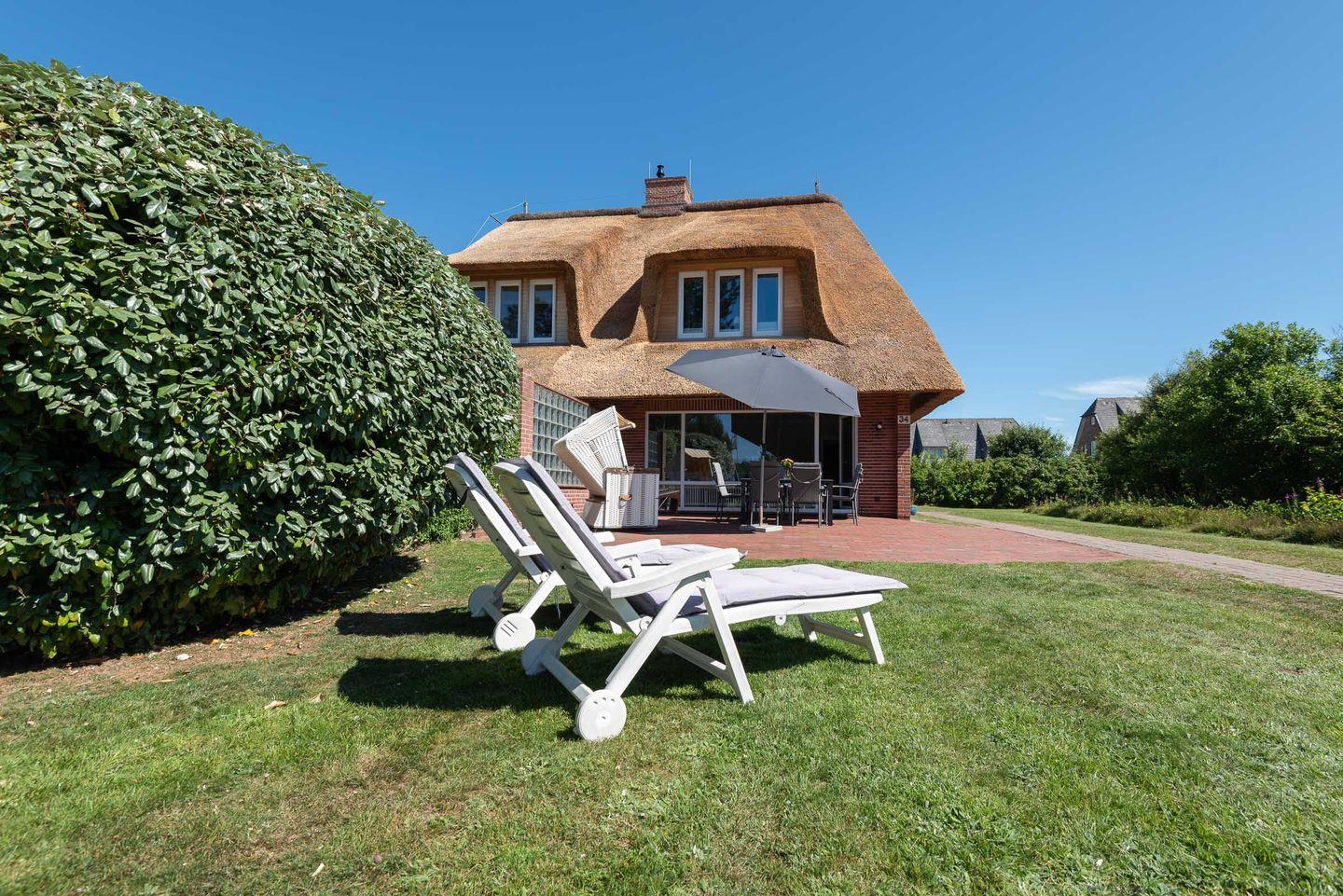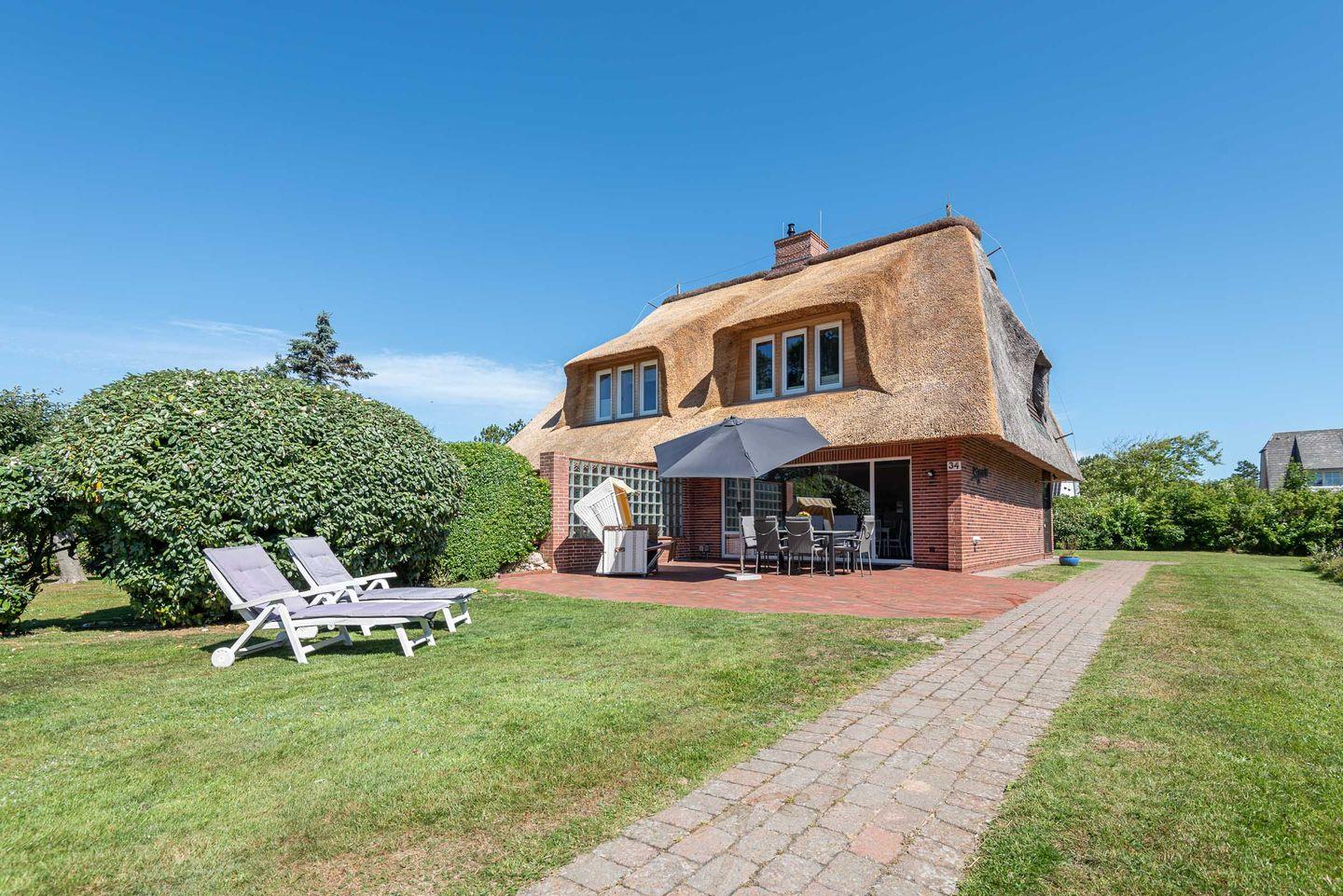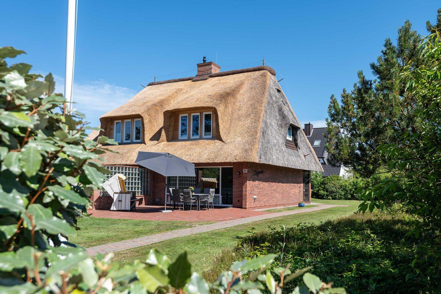 Schönes Ferienhaus unter Reet mit Terrasse, Garten und Strandnähe in Wenningstedt-Braderup.