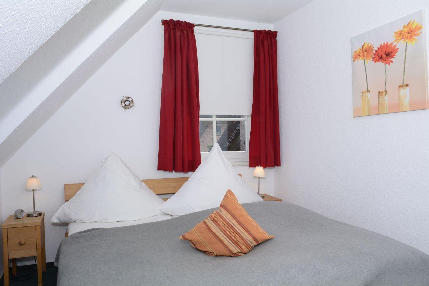 Schlafzimmer 1: Gemütliches Schlafzimmer mit Doppelbett (1,60x2,00m) und Fenster.