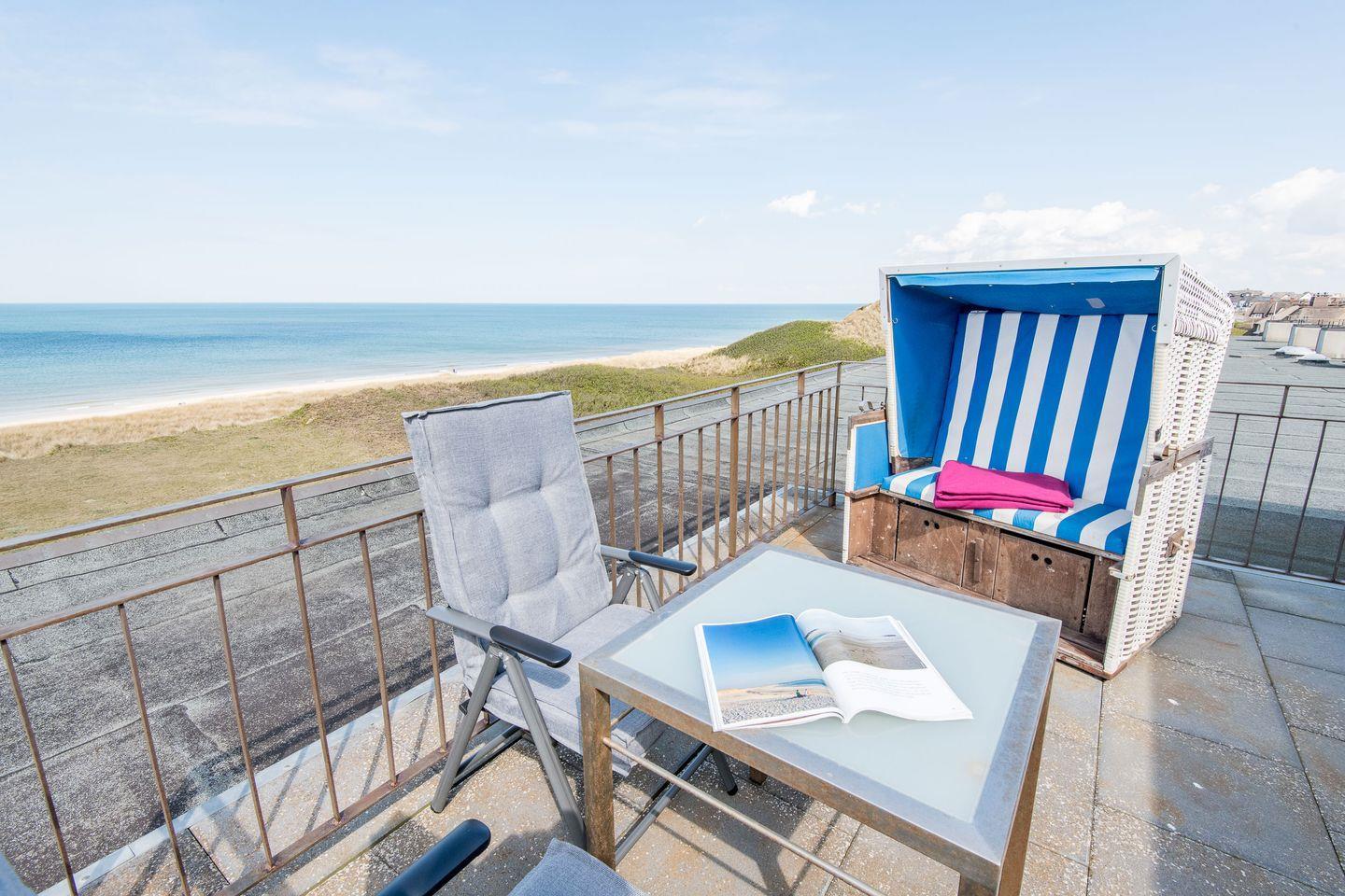 Diese neu renovierte (März 2021) Ferienwohnung bietet ein atemberaubendes Panorama in bester Lage Sylts. Näher können Sie am Strand nicht wohnen. Das lichtdurchflutete Appartement liegt im Penthouse (3. Stock) im "Dünenhof zum Kronprinzen". Bis zur zweiten Etage können Sie den Aufzug wählen oder das Treppenhaus nutzen.