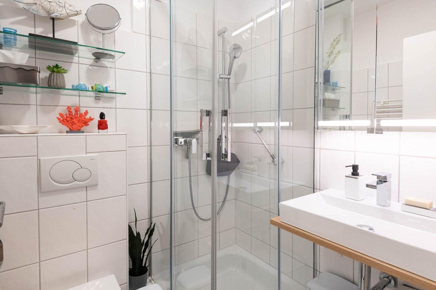 Badezimmer: Das helle Duschbad liegt zwischen Wohn- und Schlafraum.