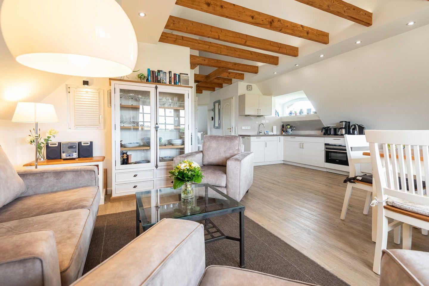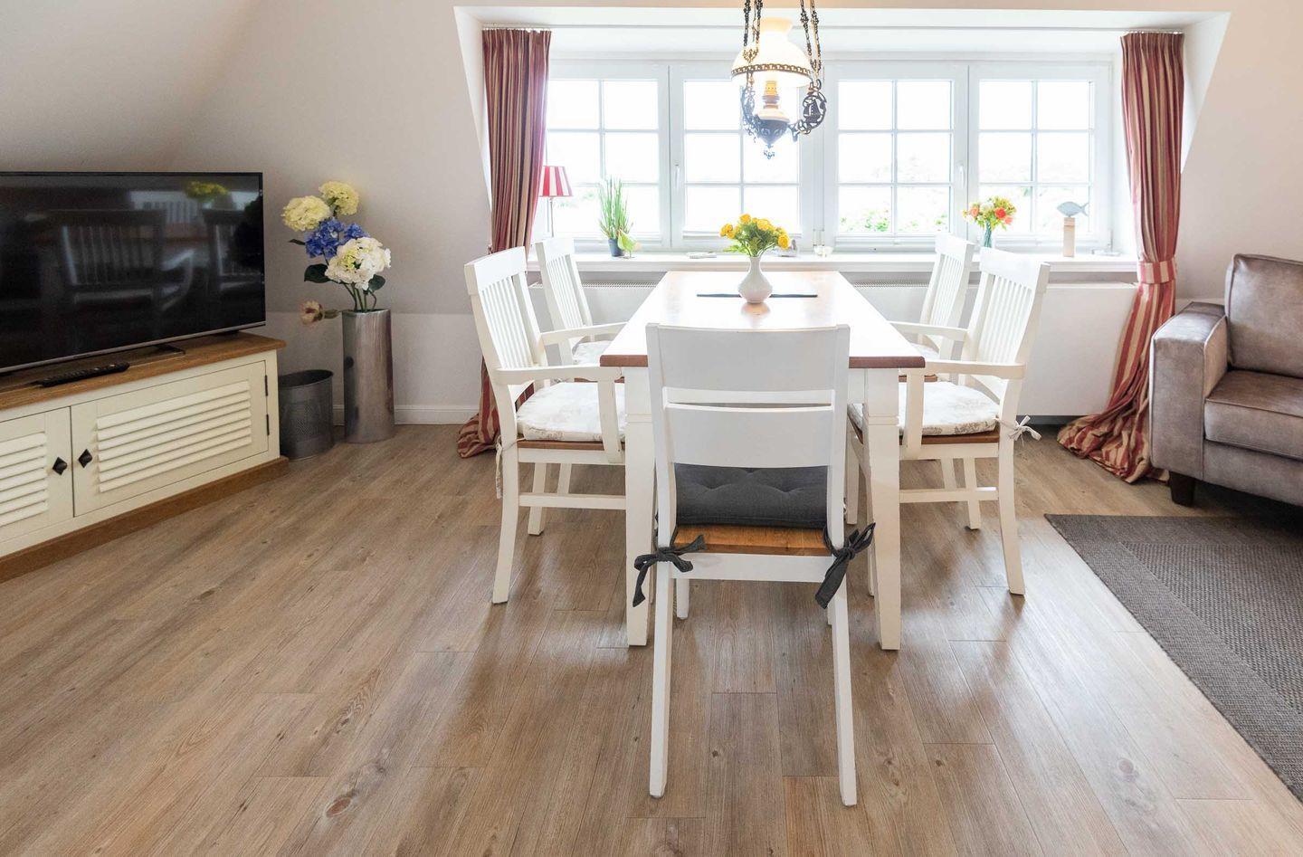 Sylturlaub auf einem herrlichen Reetdachanwesen erleben hier bis zu 4 Personen. Die ruhige Dreizimmerwohnung mit 60 m² Wohnraum in einem idyllischen Landhaus kombiniert ländliches Ambiente mit moderner Technik.