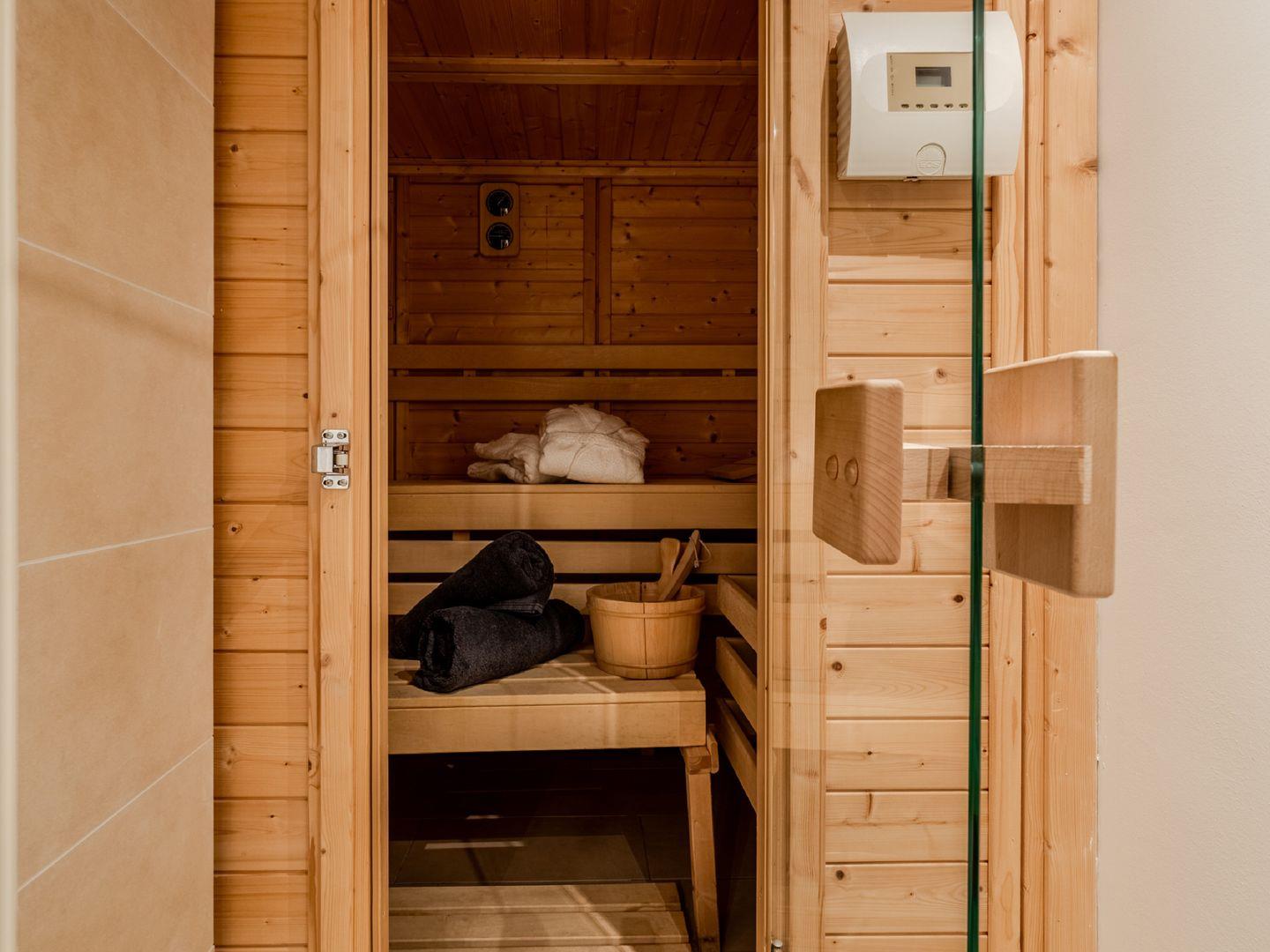 Wellness: Eigene Sauna sowie eine ebenerdige Dusche im UG.