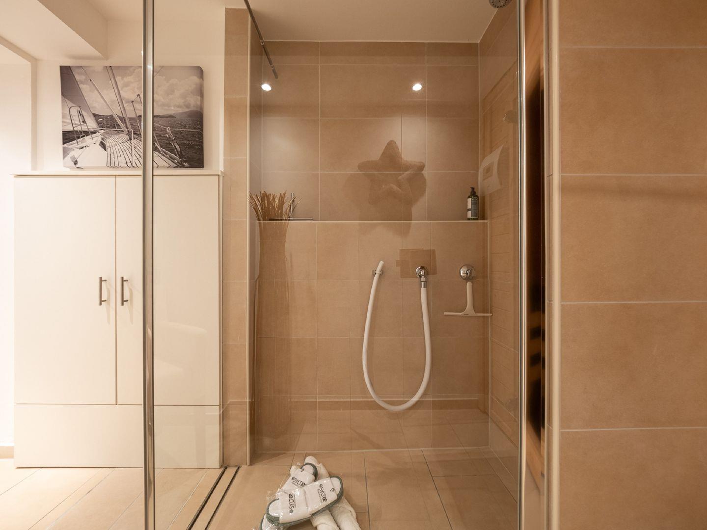 Badezimmer 2: Hochwertiges Duschbad auf Schlafebene.