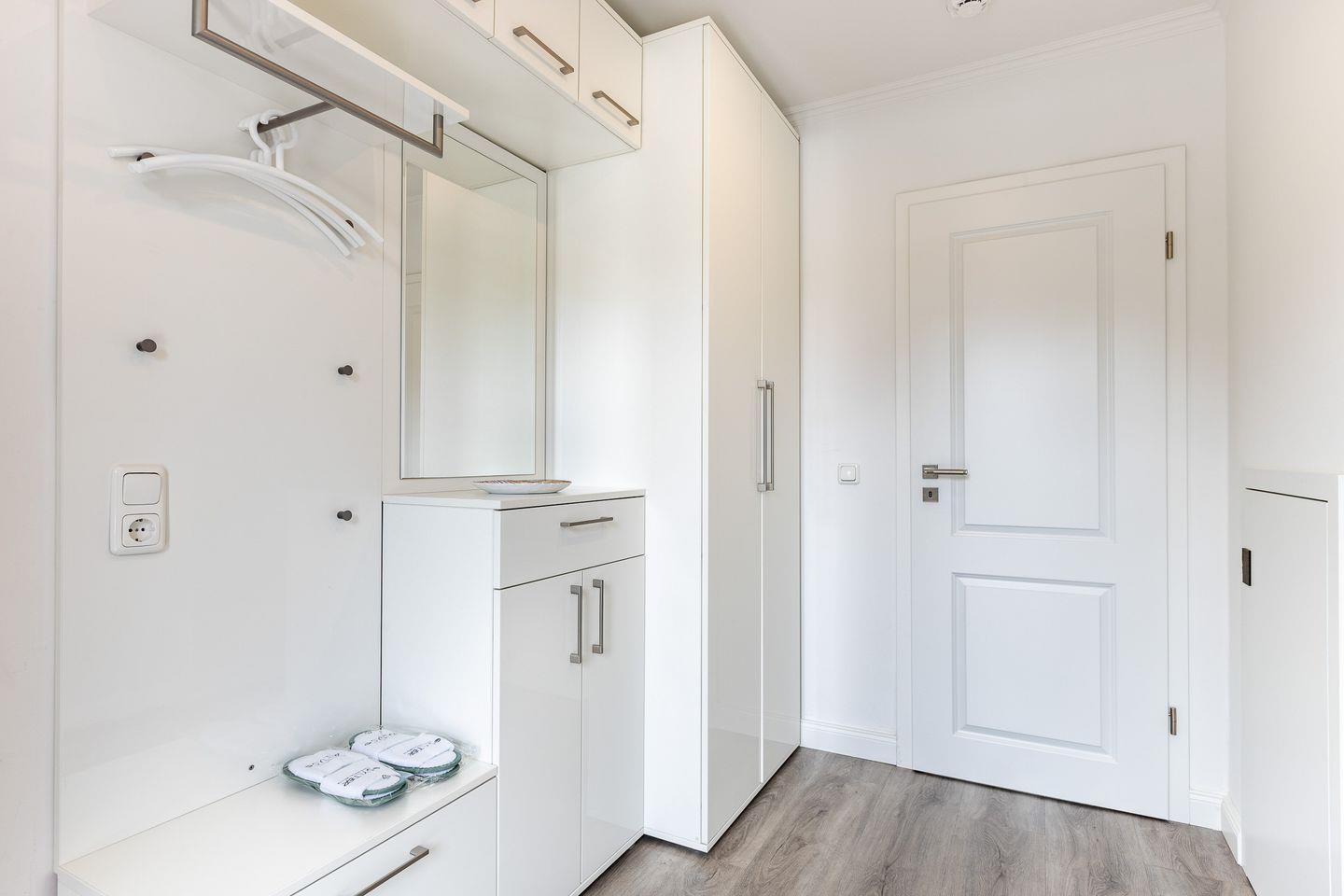 Dieses schöne Feriendomizil in ruhiger Lage befindet sich im Erdgeschoss eines gepflegten Mehrfamilienhauses. Über einen großzügigen Flur erreichen Sie: