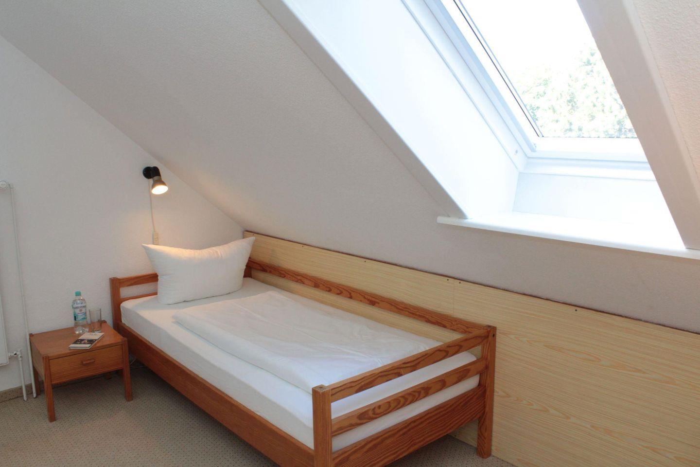 Schlafzimmer 3: Schlafraum mit einem Einzelbett und Fenster.