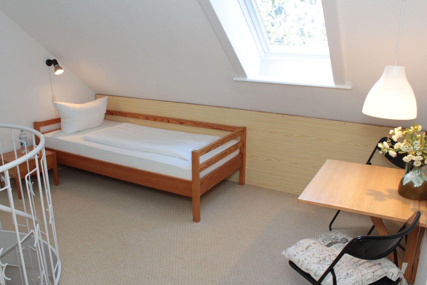 Schlafzimmer 2: Schlafraum mit einem Einzelbett und Fenster.