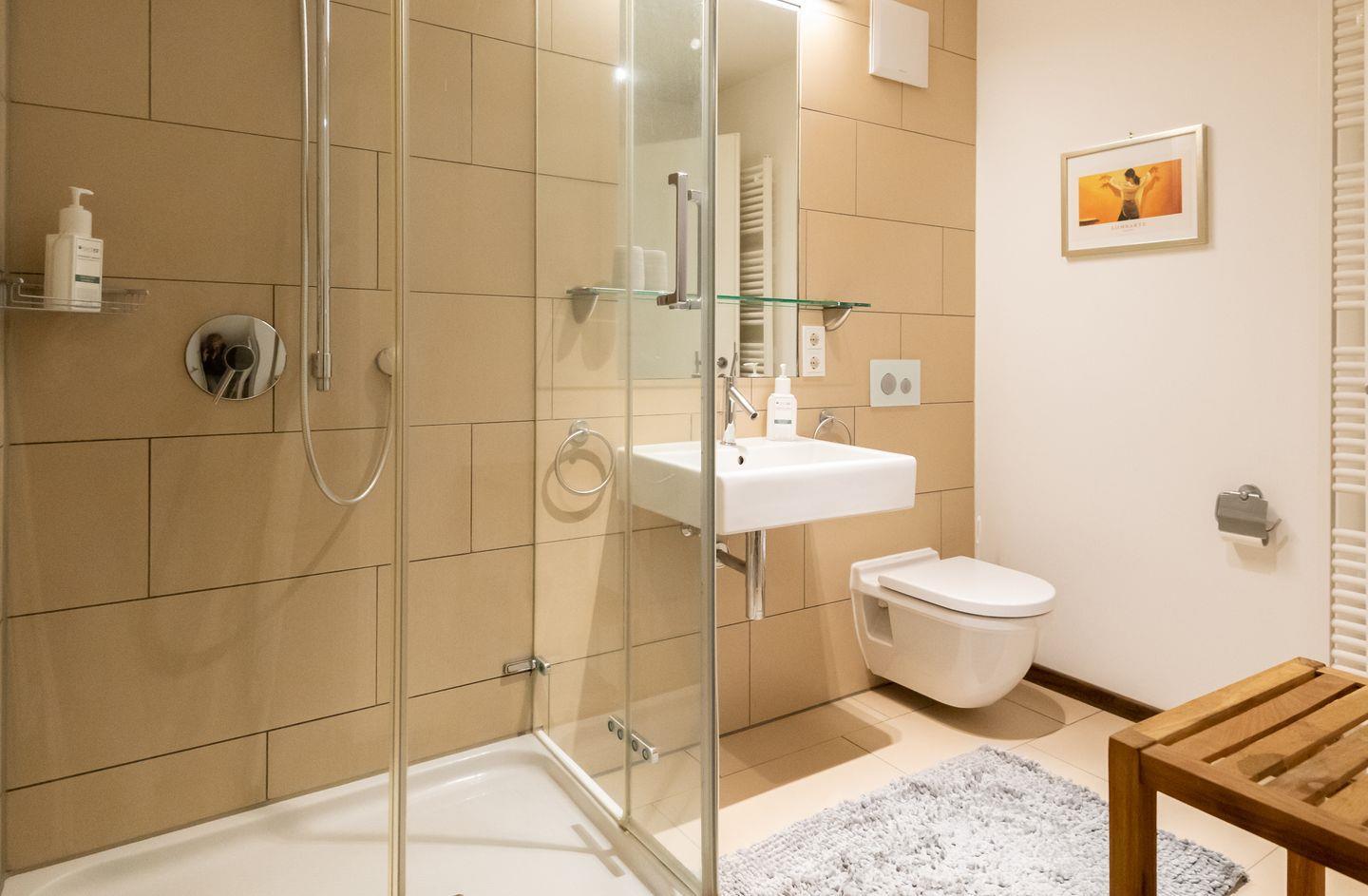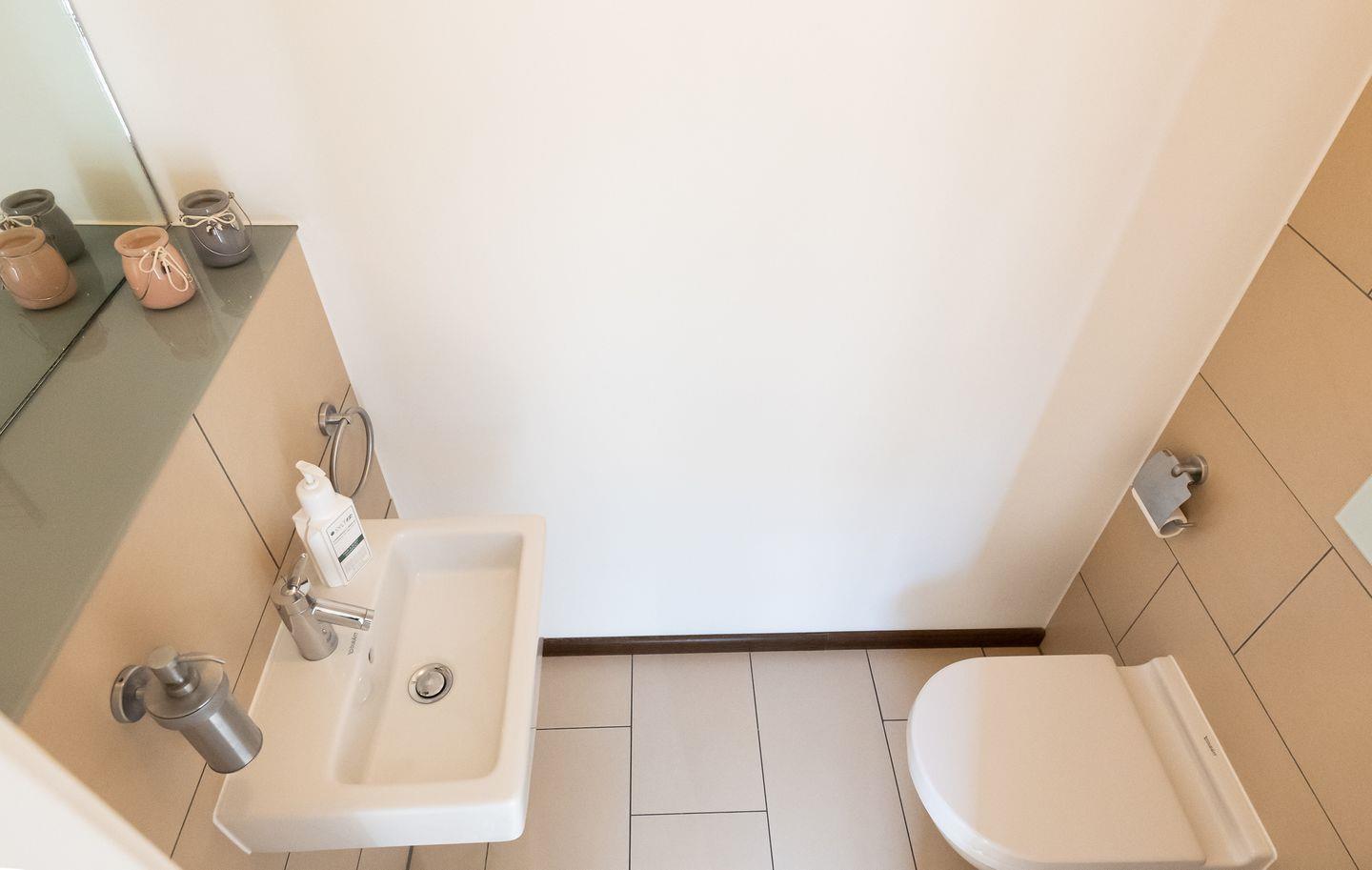 Es erwarten Sie Ihr eigener Hauseingang und ein kleiner Flur, mit dem daneben liegenden Gäste-WC.