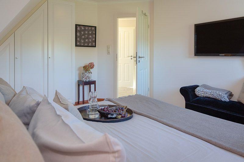 Das Haus verfügt über zwei stilvoll eingerichtete Schlafzimmer, die Platz für bis zu vier Personen bieten. Jedes Schlafzimmer ist einladend und bietet genügend Stauraum für Ihr Gepäck. Die offene Wohnküche ist komplett ausgestattet mit modernen Geräten, darunter eine Nespresso-Espressomaschine, ein Herd mit Ceran-Feld und eine Spülmaschine, sodass Sie zubereitete Mahlzeiten in geselliger Runde genießen können. Der Essbereich lädt mit einem großzügigen Esstisch ein, während das helle Wohnzimmer mit Kaminofen und mehreren TV-Geräten für gemütliche Abende sorgt.