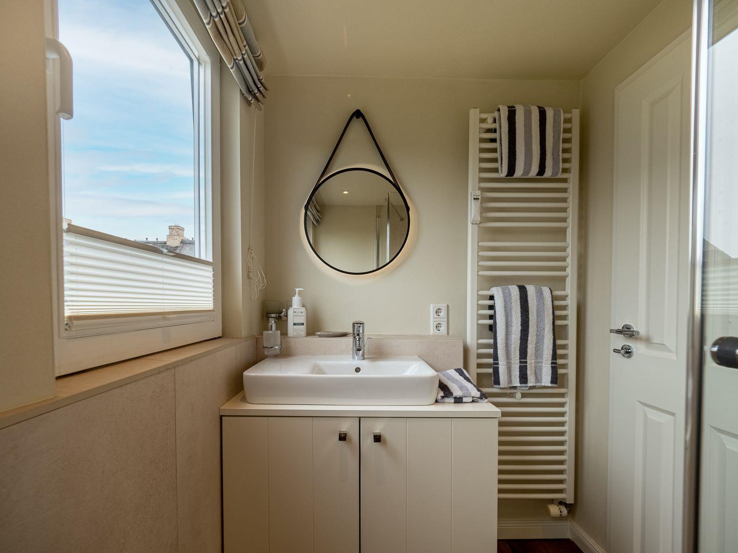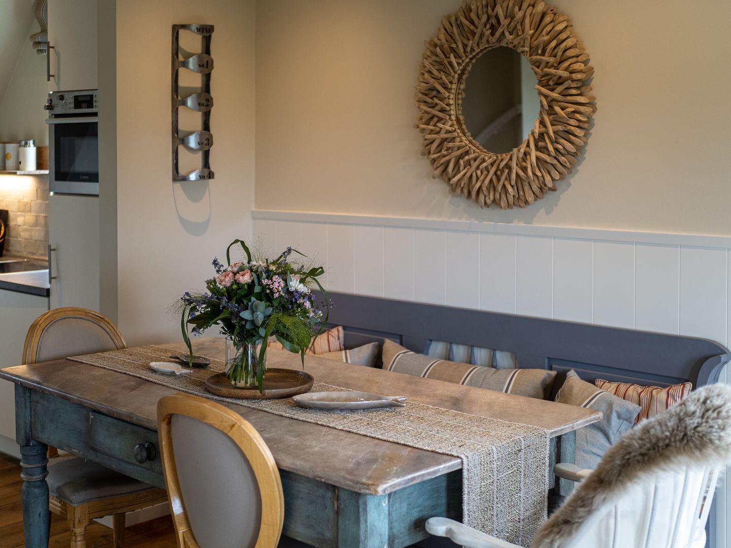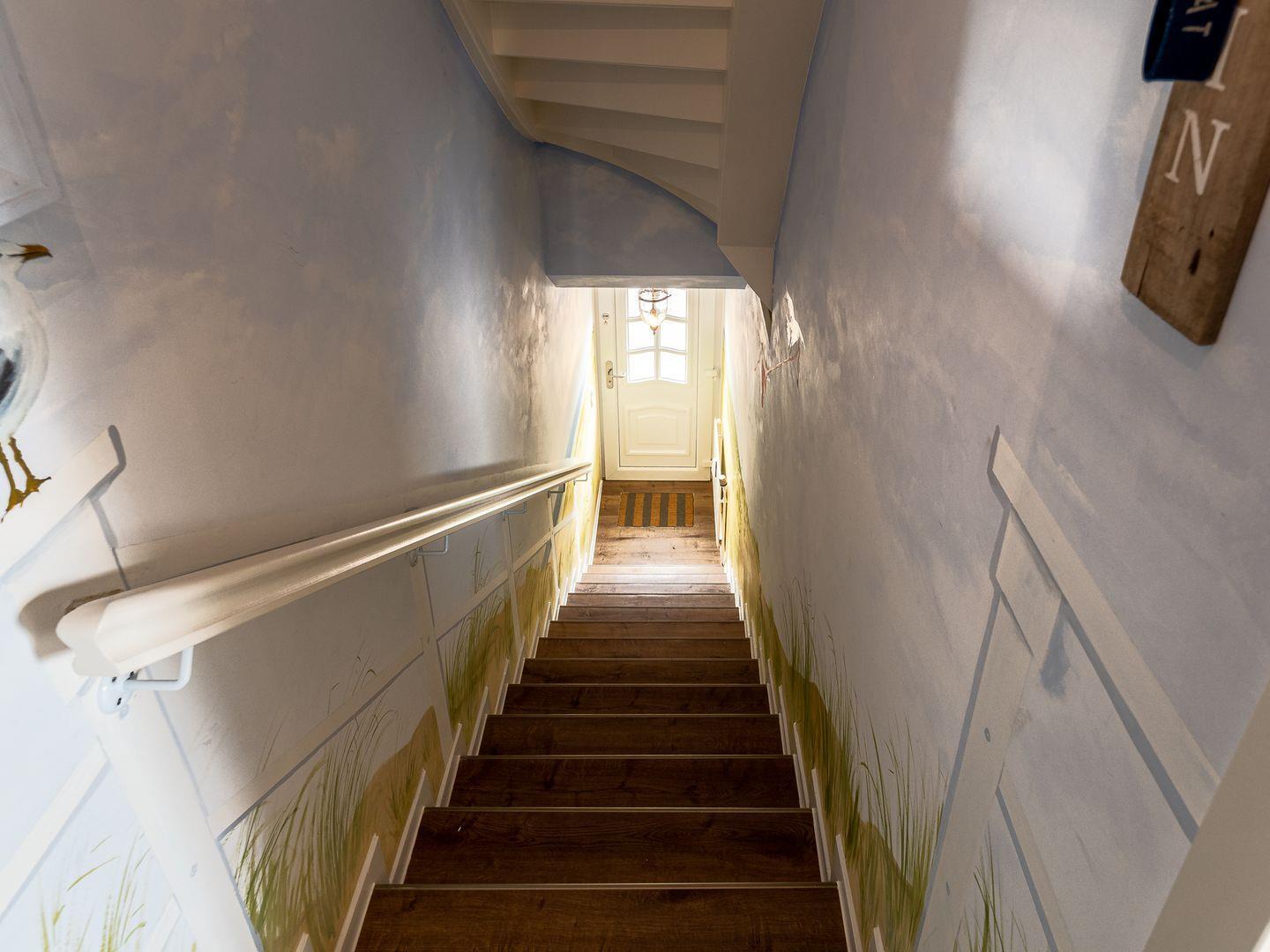 Diese Obergeschoss-Ferienwohnung im hochwertigen Beachhouse-Stil erstreckt sich über zwei Ebenen im Obergeschoss. Sie erreichen die Wohnung über ein eigenes, kleines Treppenhaus mit Garderobe.