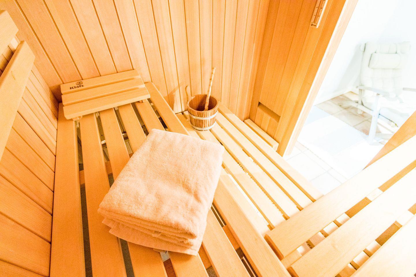 Ruheraum mit zwei Liegen und Sauna (Münzautomat) zur Eigennutzung.