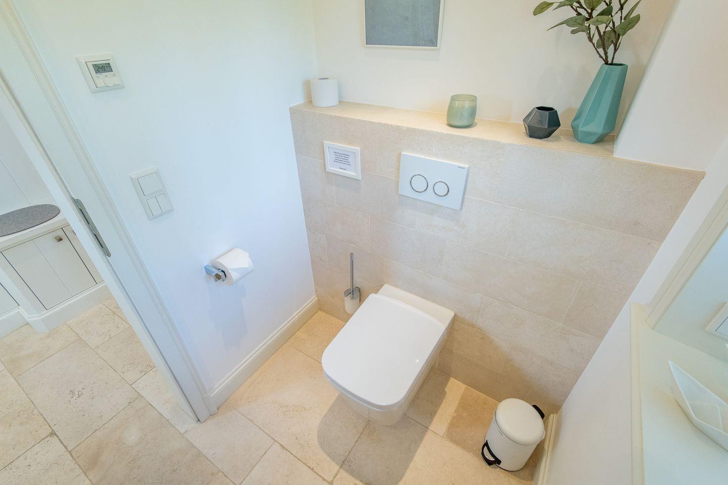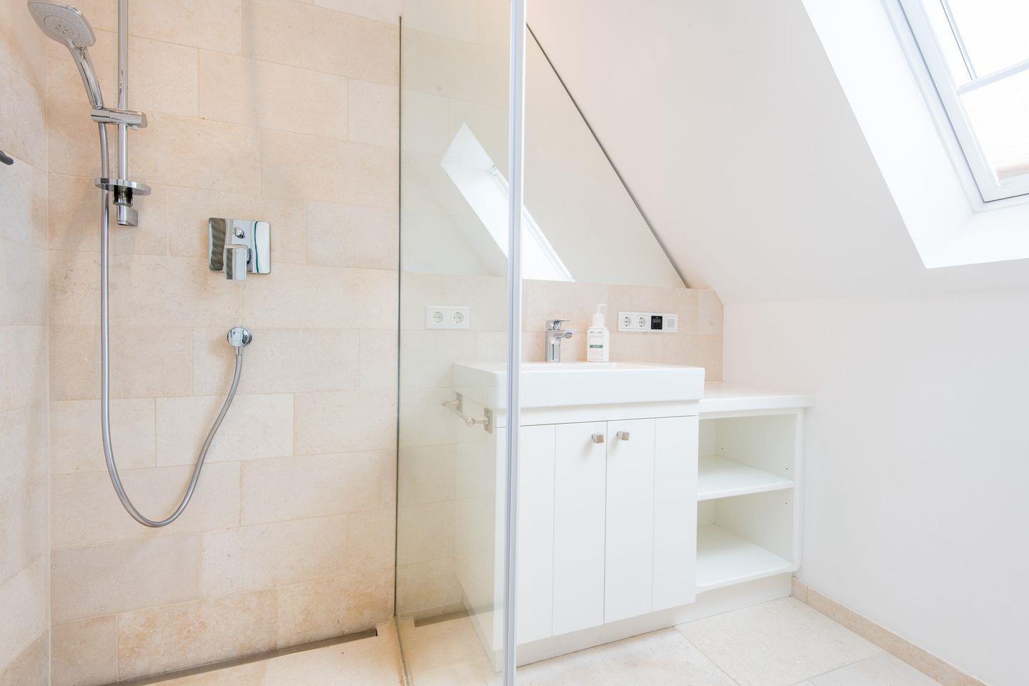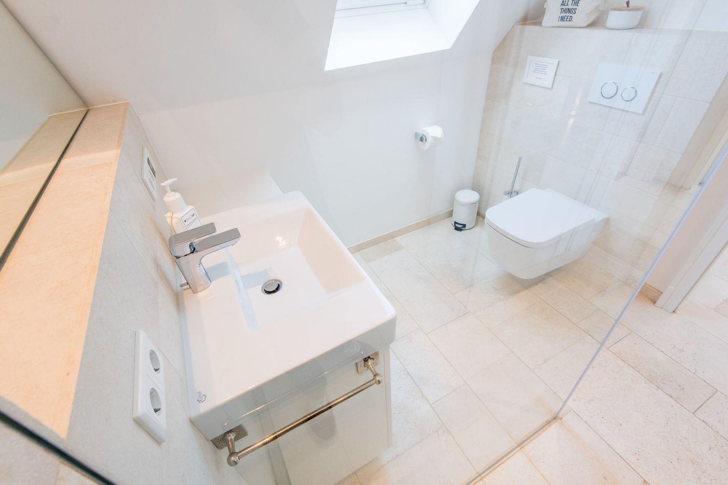 Badezimmer 2: mit Regendusche, WC und Fenster.