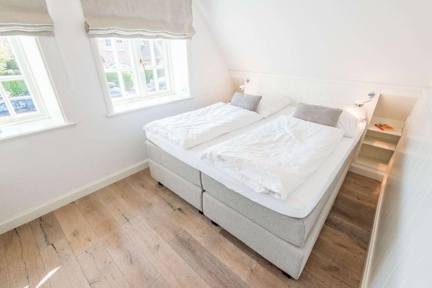 Schlafzimmer 3: mit Boxspringbett (1,80 x 2,0 m), TV und Fenster.
