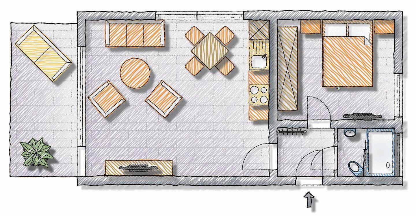Diese Wohnung befindet sich im Erdgeschoss auf einer Ebene, wurde im Sommer 2022 renoviert und modernisiert und teilt sich wie folgt auf: