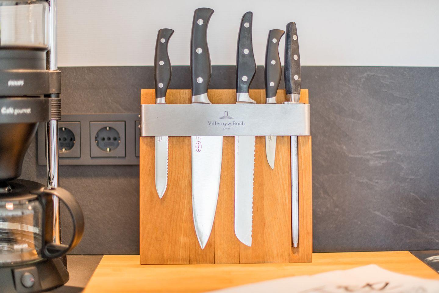 Koch-/Wohn-/Essbereich: Neben der modernen und gut ausgestatteten Küchenzeile befindet sich der Esstisch für 3 Personen. Eine komfortable Sofaecke mit hochwertiger Schlafcouch (1,60 x 2,00 m) inkl. TV runden den Wohnbereich ab. Die großen Fenster und der Ausgang auf die eigene möblierte West-Terrasse mit Saison-Strandkorb laden zum Urlaub machen ein.