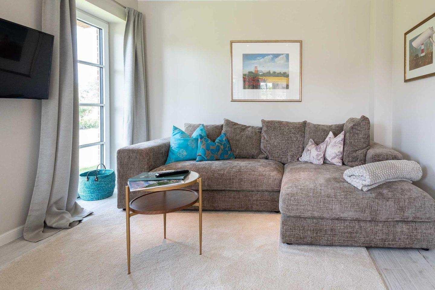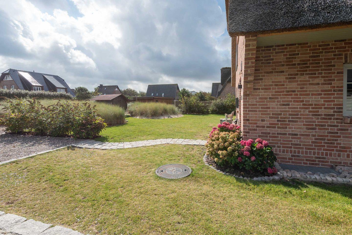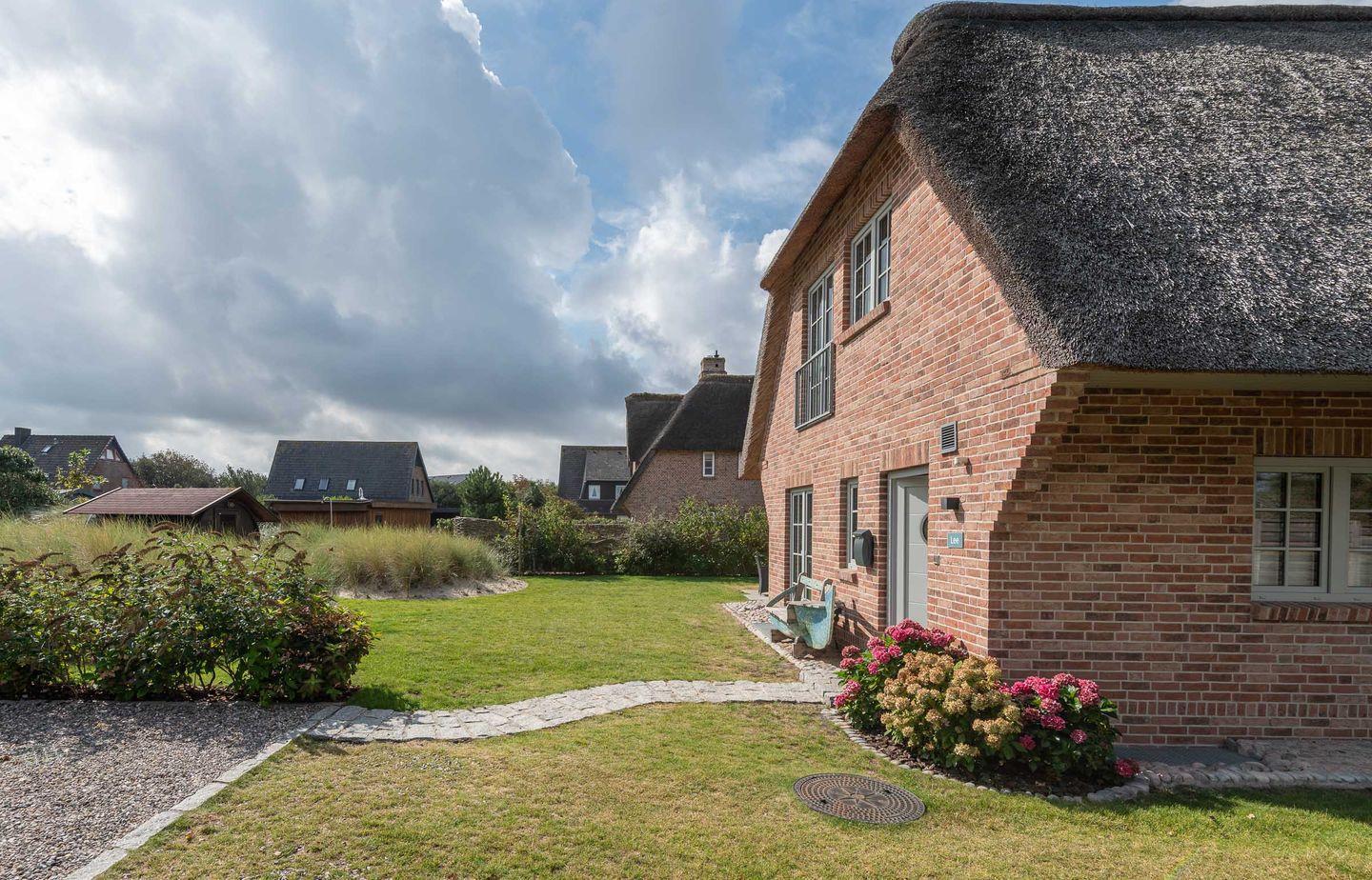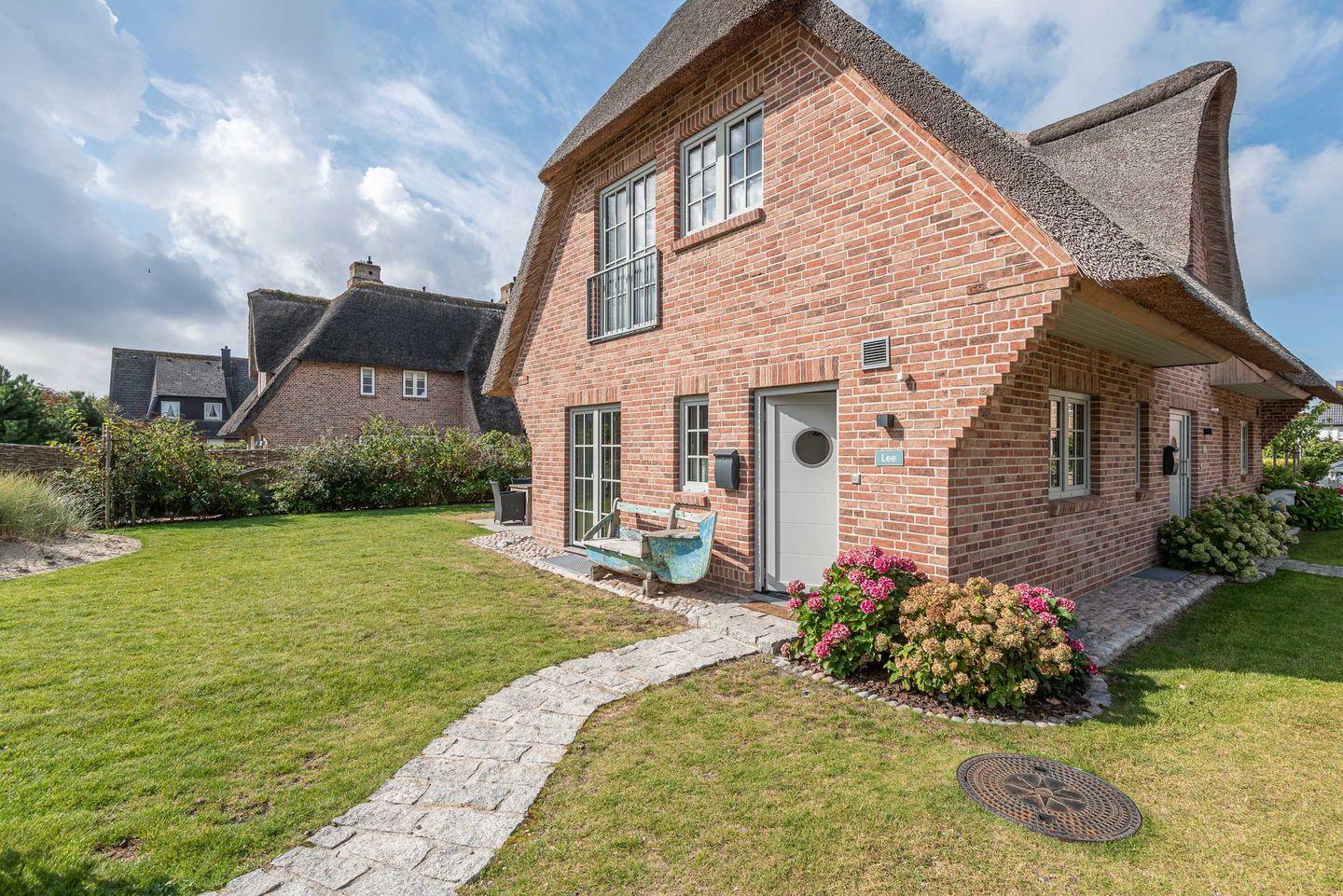 Moderne und nachhaltige Haushälfte unter Reet mit ca. 110 m² bietet mit Garten, Süd-Terrasse, eigener Außen-Sauna und ruhiger Lage in Wenningstedt helle und großzügige Wohnfläche für 6 Personen.