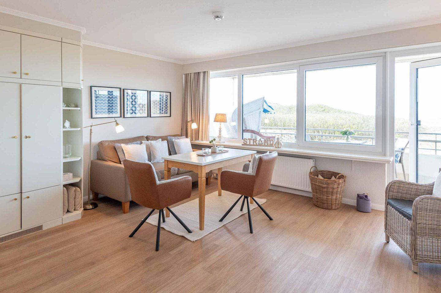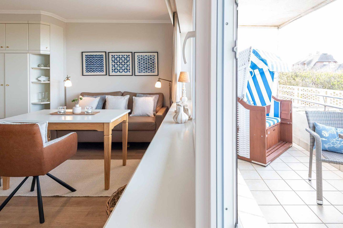 Gemütliche 1-Zimmerwohnung mit Meerblick auf Sylt und großem Balkon für erholsamen Urlaub.
