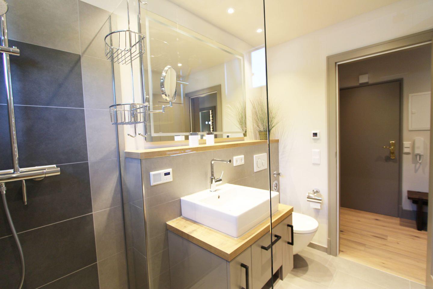 Zudem finden Sie in dieser Ferienwohnung ein neu renoviertes Badezimmer in modernen Grautönen. Ferner steht Ihnen eine Münz-Waschmaschine im Mieterkeller zur Verfügung.