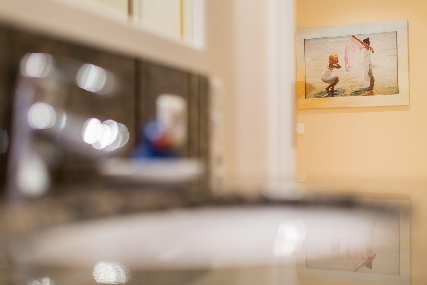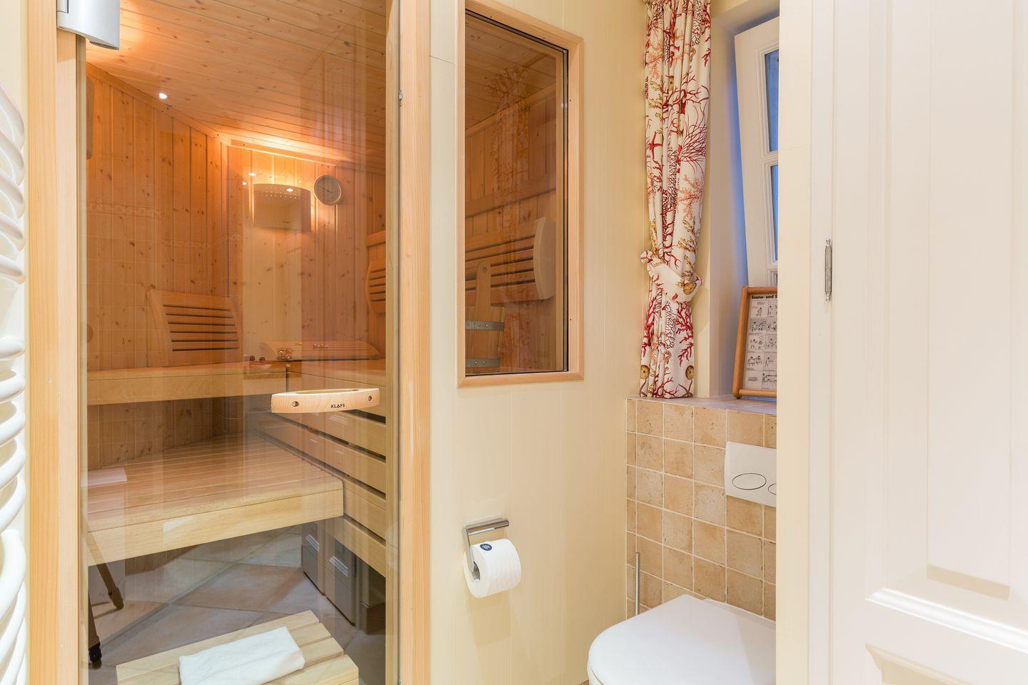 Im Untergeschoss der Wohnung befinden sich zwei gemütliche Räume mit jeweils einem Doppelbett. In einem der Räume finden Sie außerdem ein weiteres Einzel-Kojenbett, in dem sich vor allem ein Kind sicherlich wohlfühlen wird. Auf gleicher Ebene bietet Ihnen das Domizil ein Wohlfühlbadezimmer mit Sauna, Dusche und WC sowie ein weiteres Badezimmer mit Badewanne, Dusche und WC.