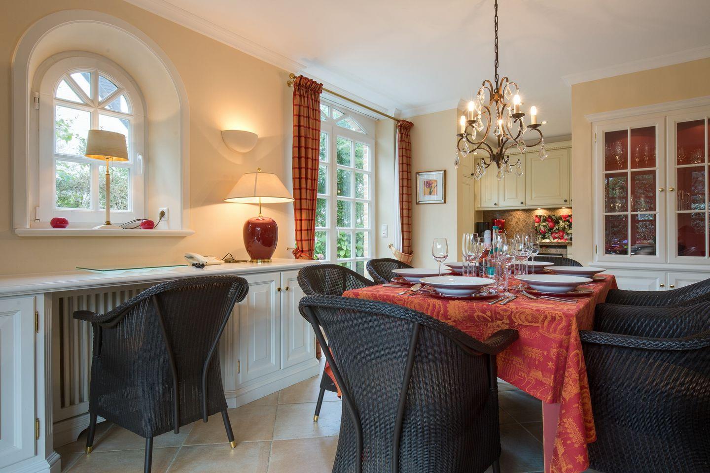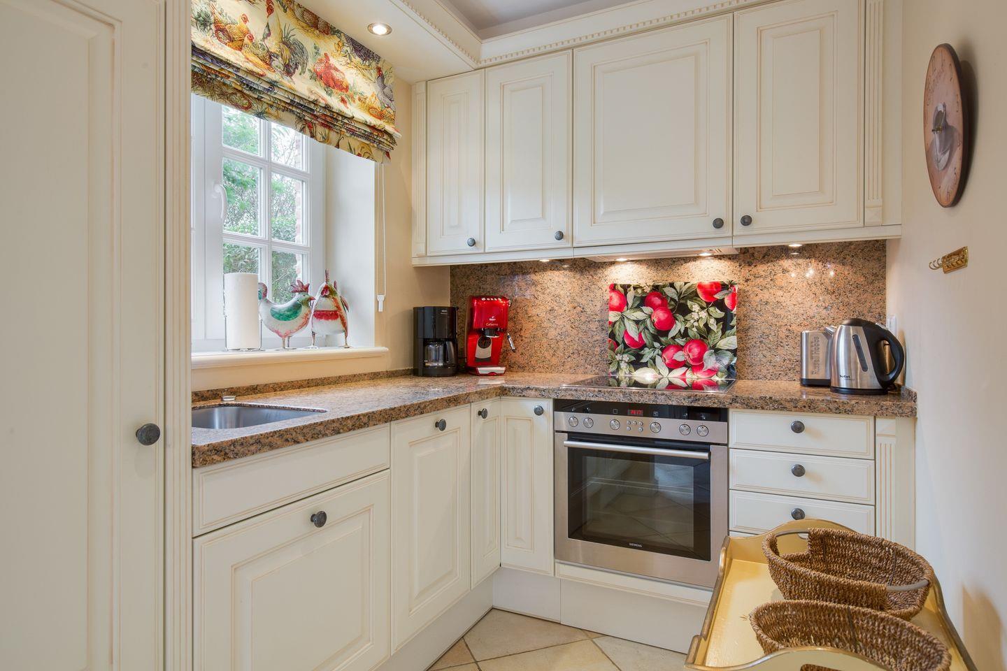 Im großen Wohnbereich erwartet Sie eine geschmackvolle Einrichtung. Vom gemütlichen Sofa aus schauen Sie auf den antiken Kachelofen und der Essbereich bietet genügend Platz für bis zu sechs Personen. Die Küche ist geschickt durch eine Glastür vom Wohnbereich getrennt und bietet Ihnen mit ihrer vollen Ausstattung alles, was Ihr Urlaubsherz begehrt.