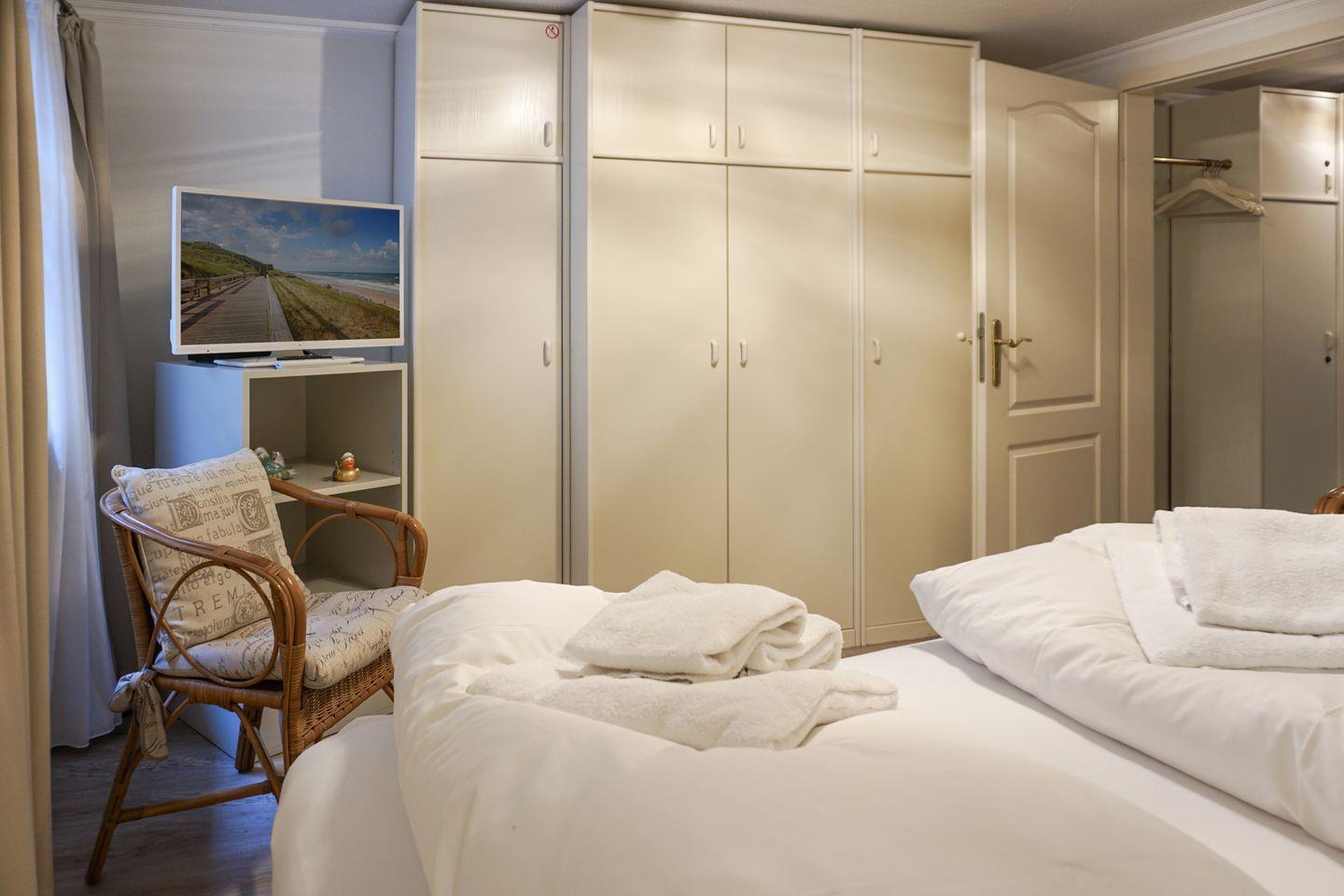 UG: ein Raum mit Doppelbett (180x200cm) und Flatscreen-TV, ein Raum mit zwei Einzelbetten (80x200cm), Badezimmer mit Dusche und WC, Gäste-WC